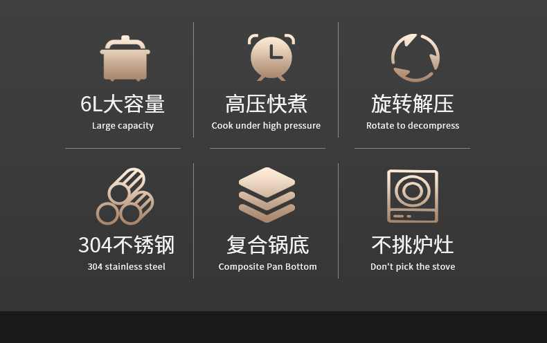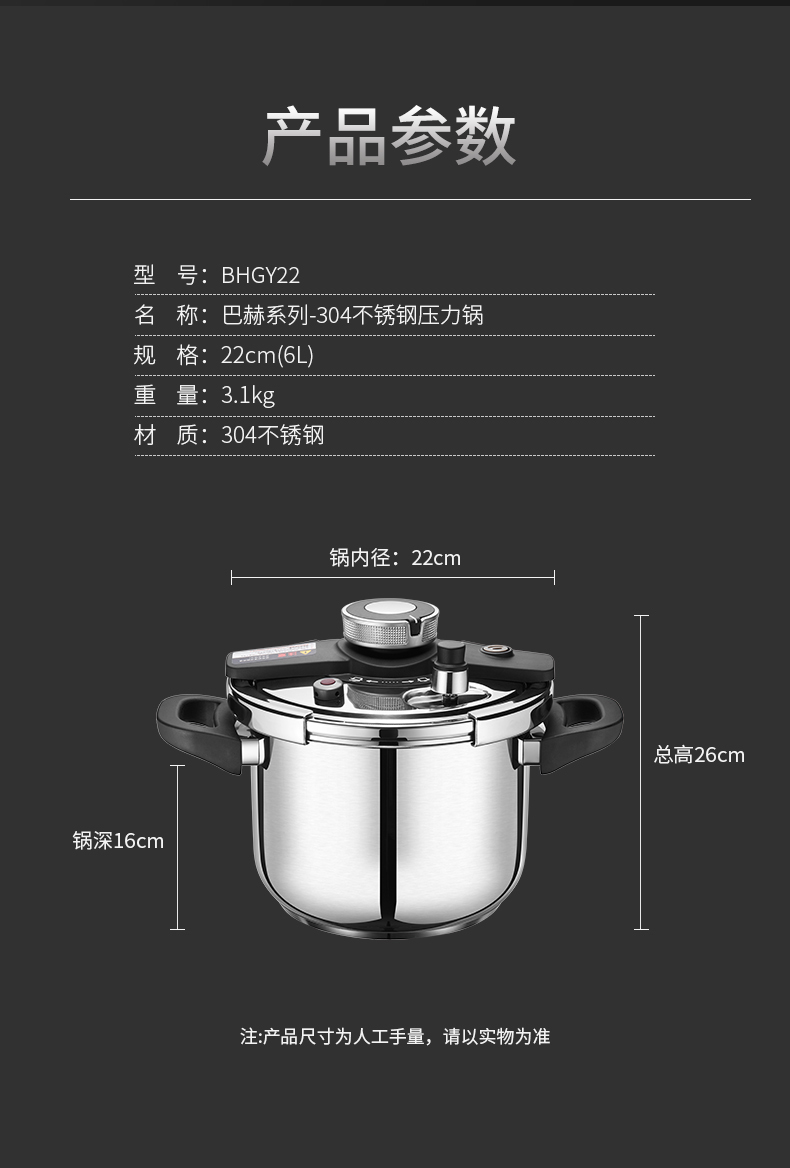 商品名称:omuda/欧美达6升巴赫系列304不锈钢压力锅BHGY22