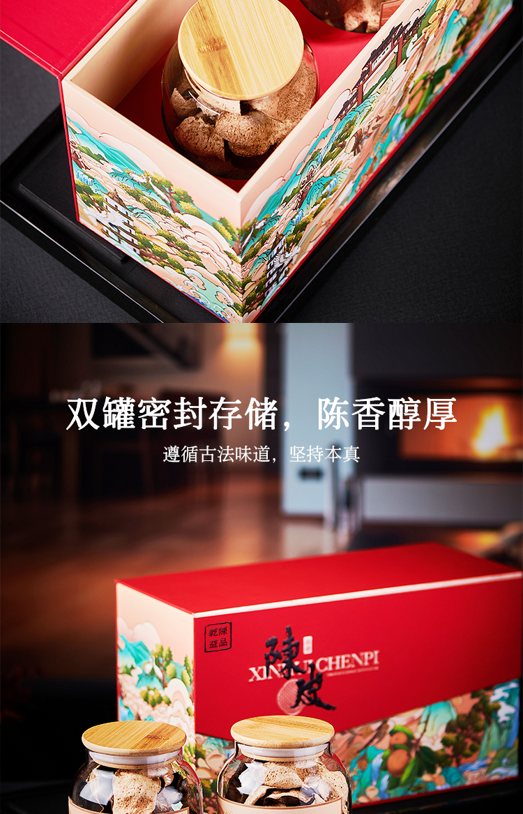 商品名称:昀品堂乾陳益品甘香雅韵新会陈皮双罐礼盒250g