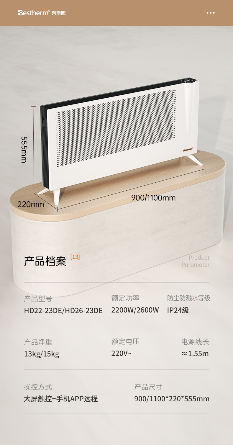 商品名称:Bestherm/百斯腾火炬系列双制热双散热抗菌全屋主供暖电暖器H1