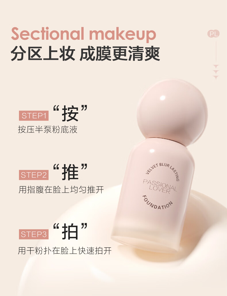 PASSLONAL LOVER/恋火3.0版本绒雾持妆粉底液30ml