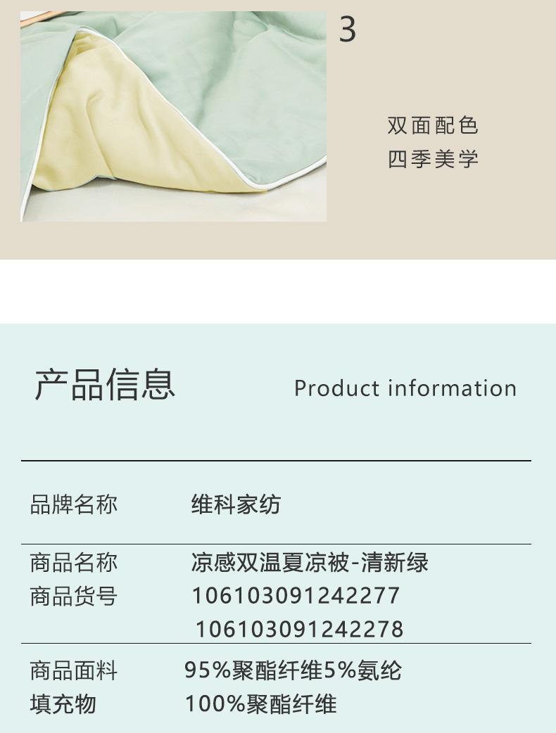商品名称:VEKEN/维科家纺凉感双温夏凉被-清新绿