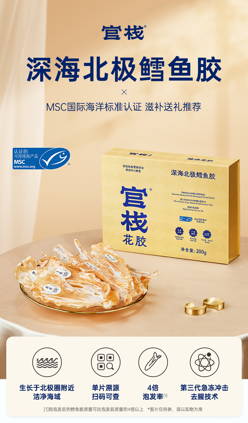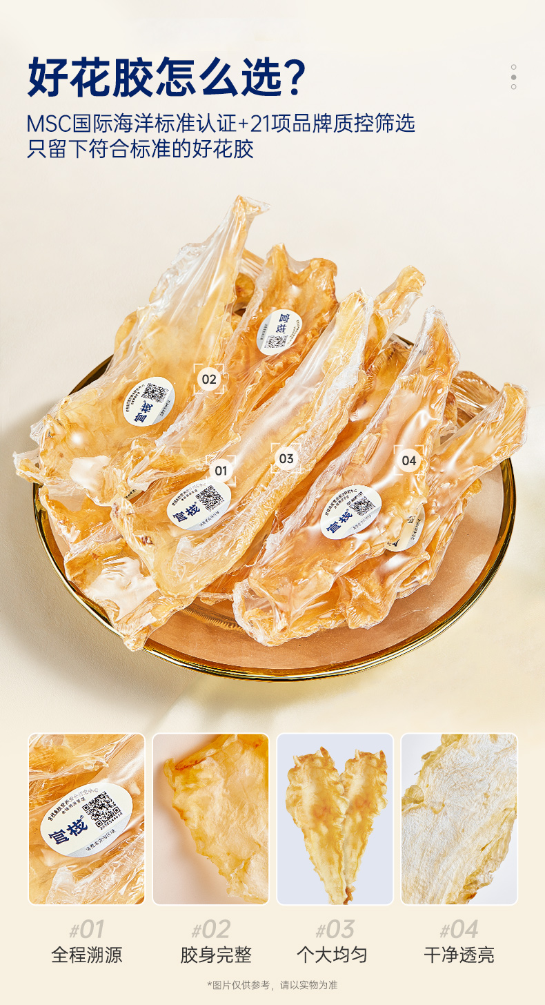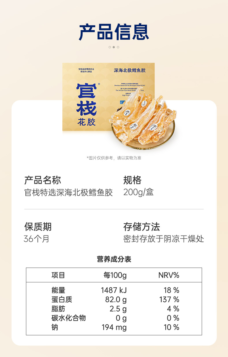 商品名称:官栈花胶特选深海北极鳕鱼胶礼盒200g