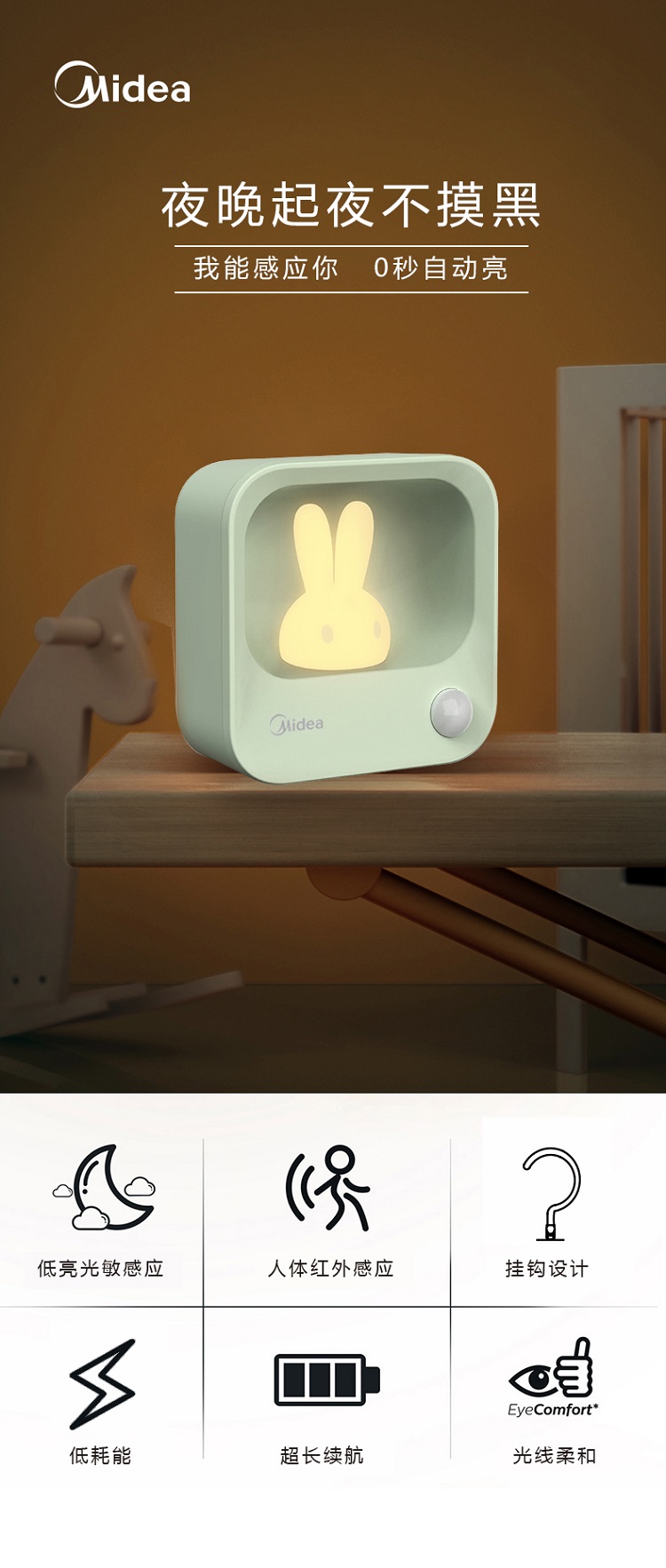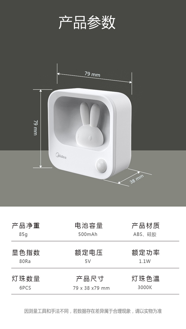 商品名称:Midea/美的美小兔感应夜灯MTD1.1-M/K-01