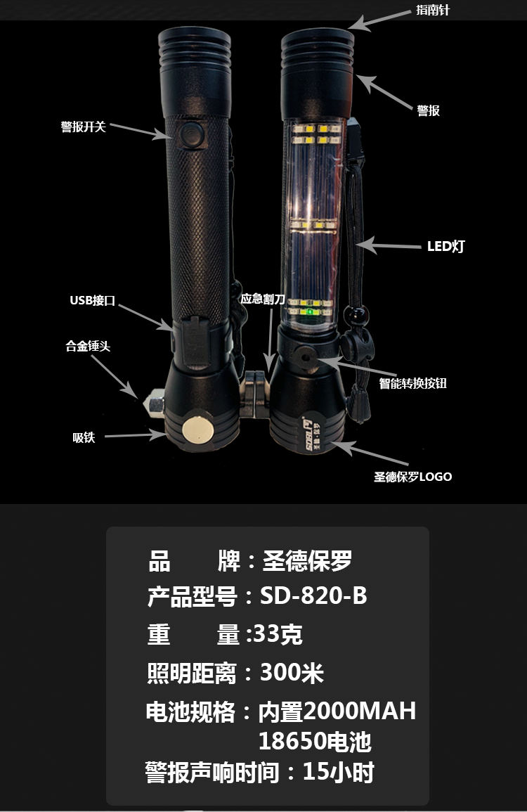 商品名称:SDBL/圣德保罗多功能逃生手电SD-820-B