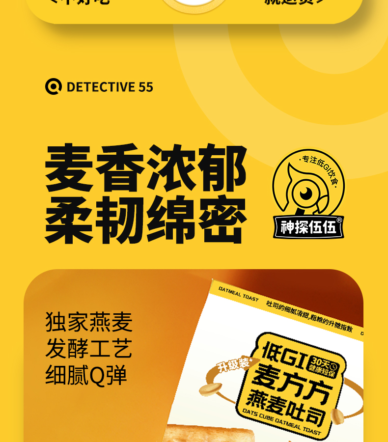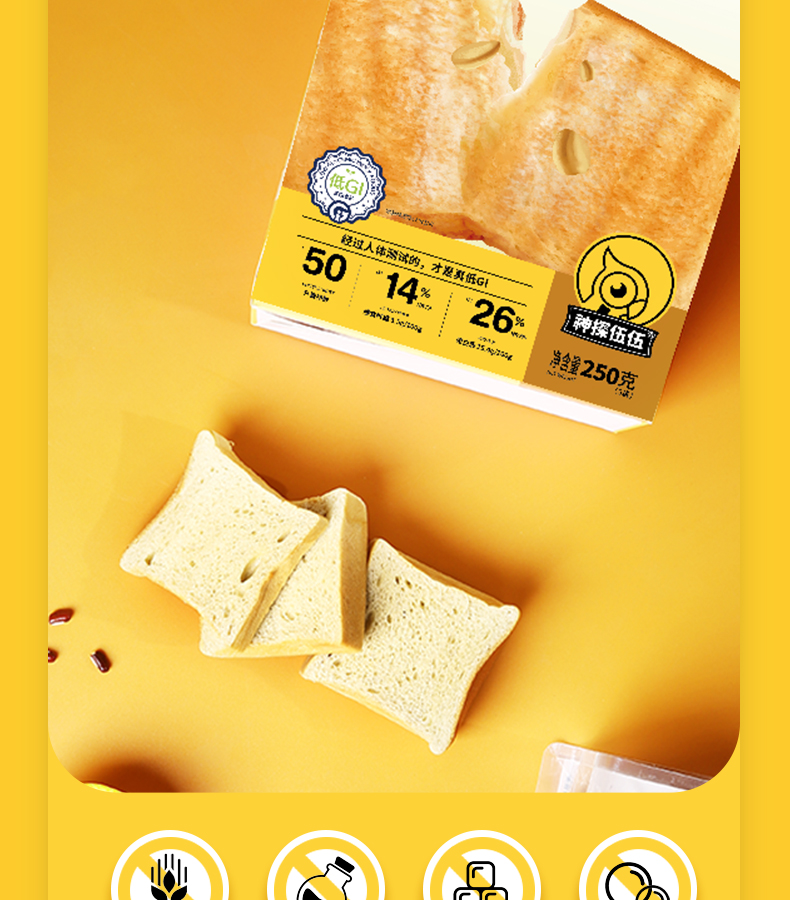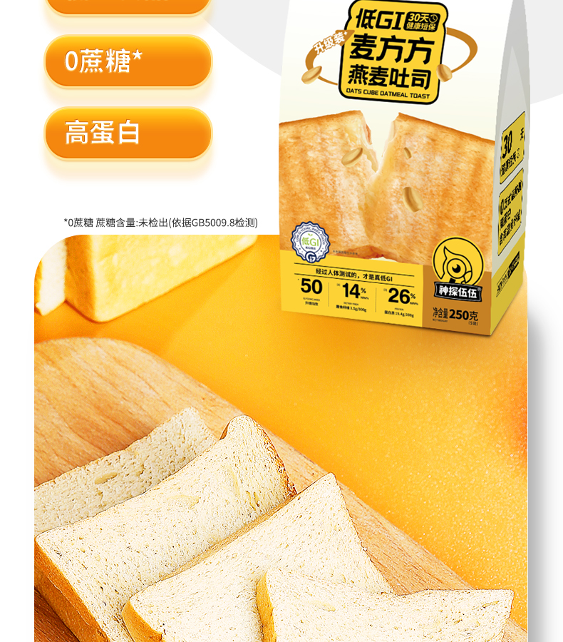 商品名称:神探伍伍低GI麦方方燕麦吐司250g