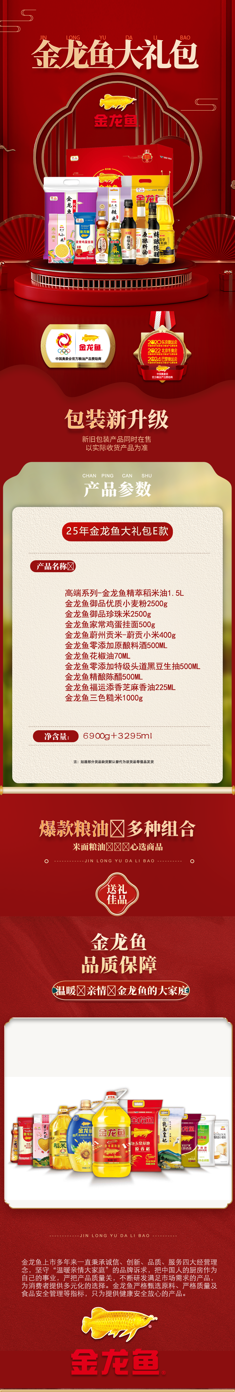 商品名称:金龙鱼常规食品大礼包E款6900g+3295ml