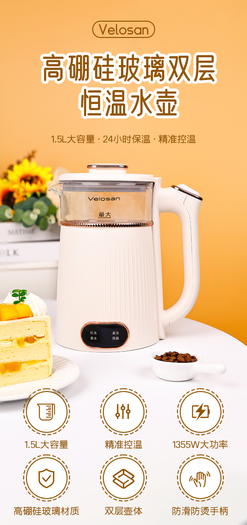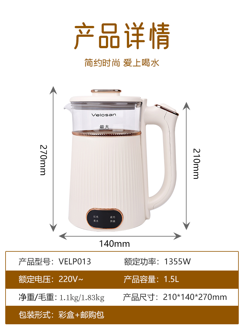 商品名称:VELOSAN/温仑山1.5升电热水壶VELP013