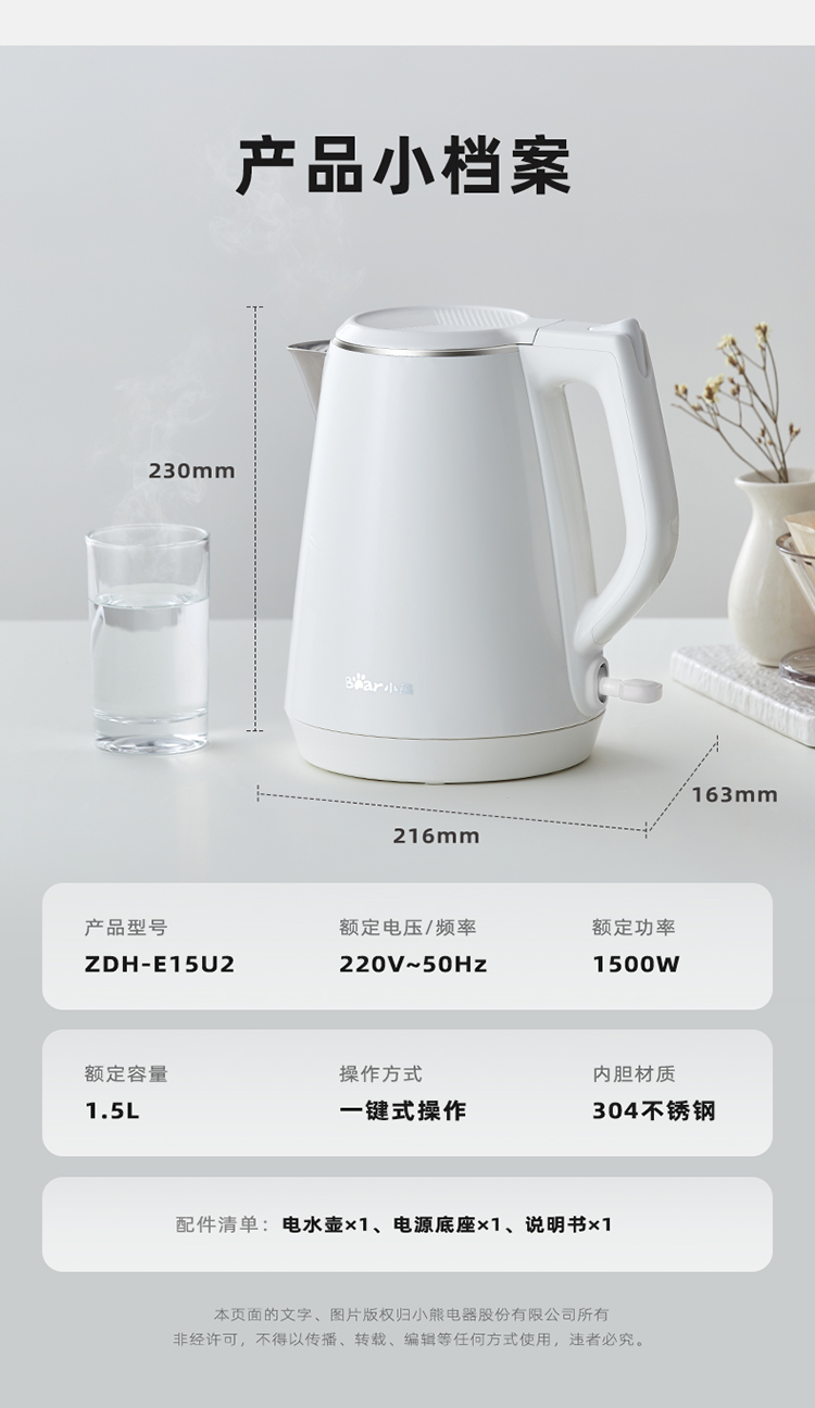 商品名称:Bear/小熊1.5升电热水壶ZDH-E15U2