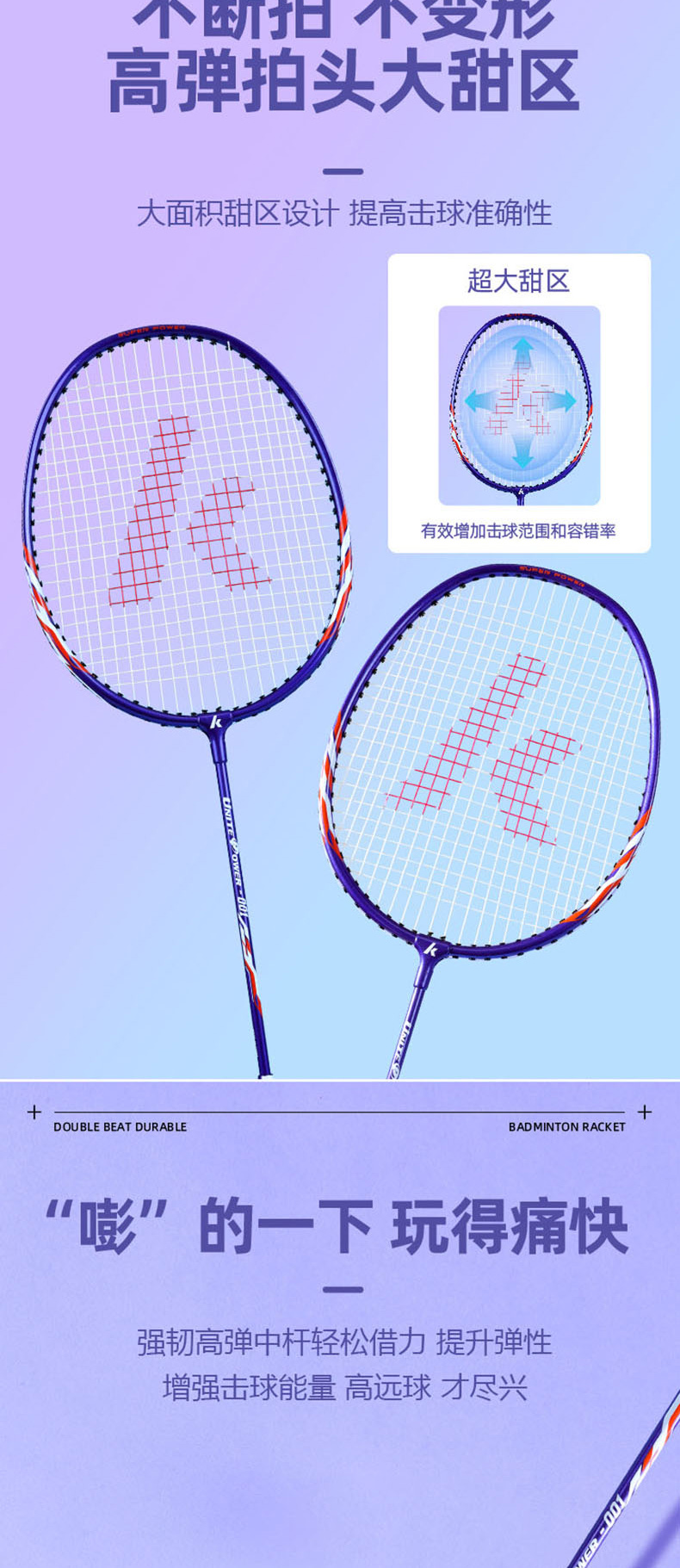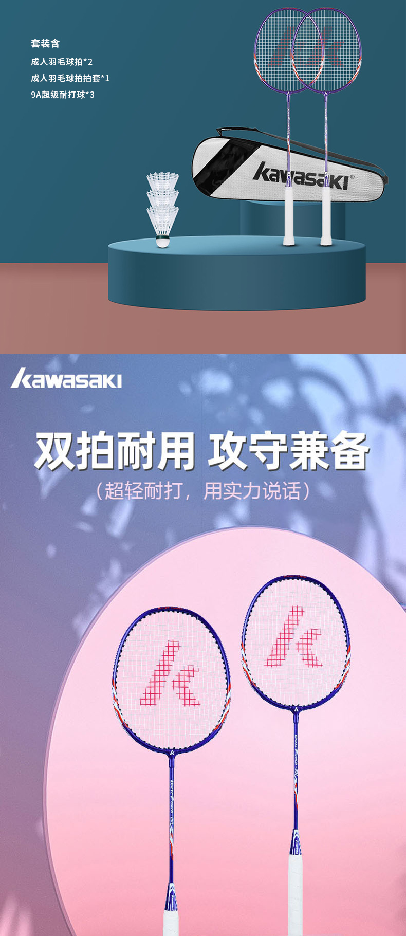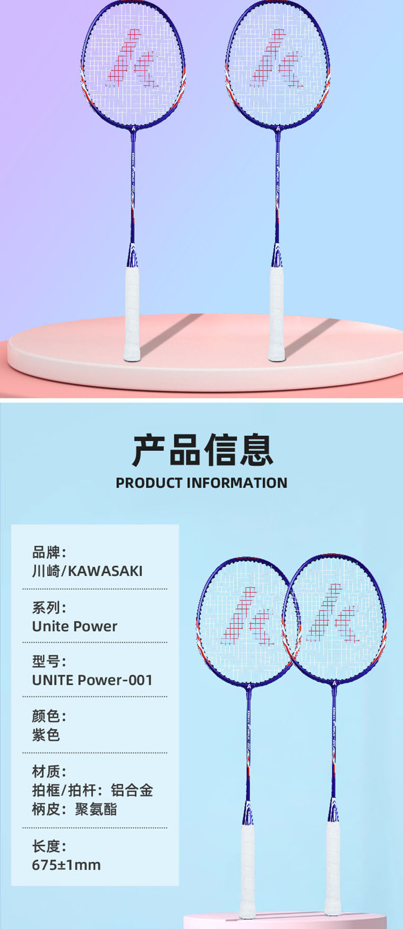 商品名称:KAWASAKI/川崎羽毛球拍含3只装耐打球UNITE Power-001