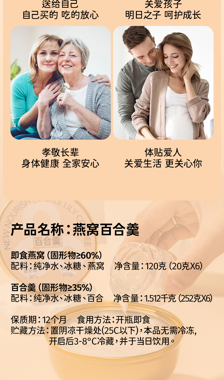 商品名称:品鉴新滋养燕窝百合羹礼盒1632g
