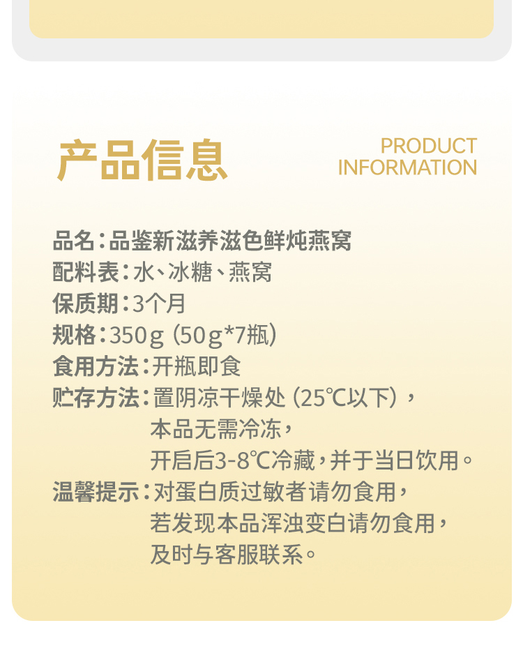 商品名称:品鉴新滋养滋色鲜炖燕窝礼盒350g