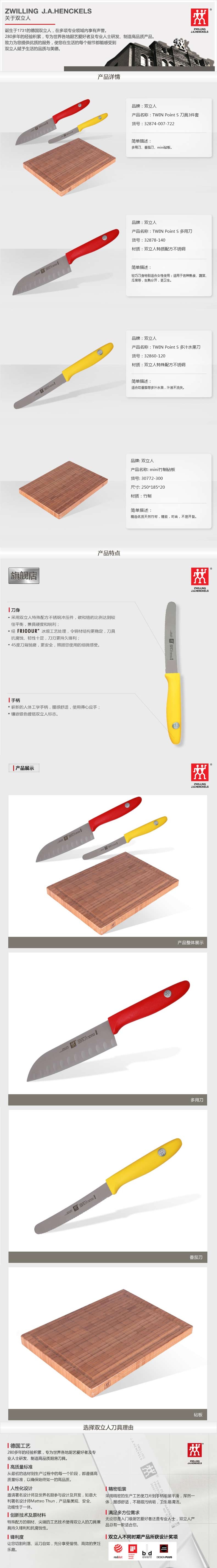 商品名称:ZWILLING/双立人TWIN Point S彩色刀具粘板三件套32874-007-722