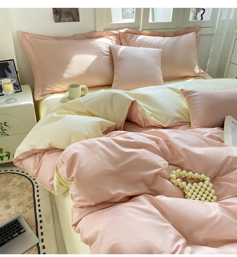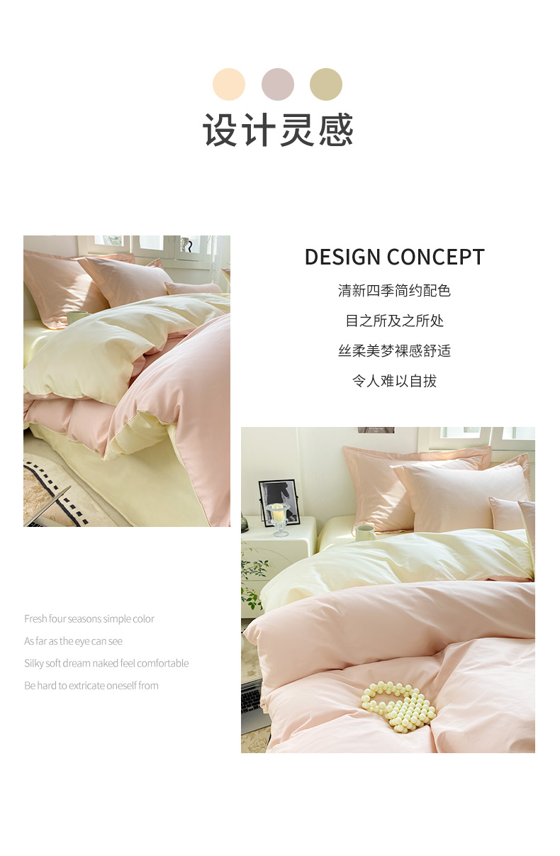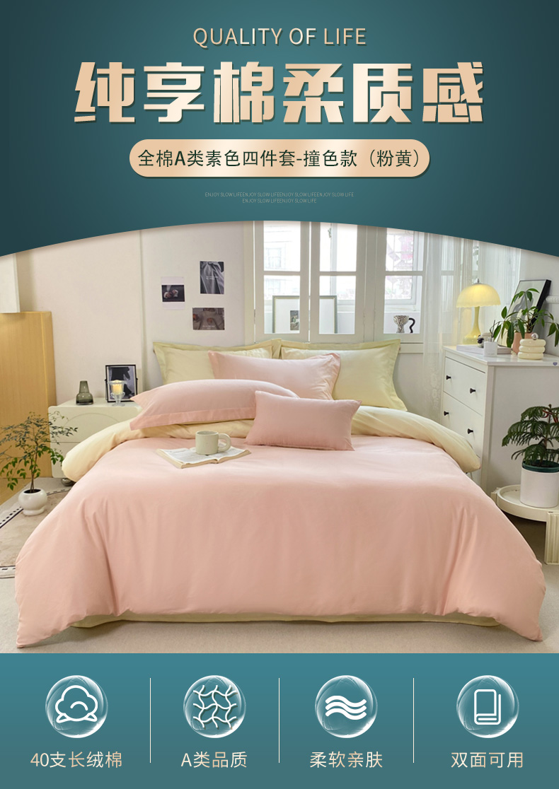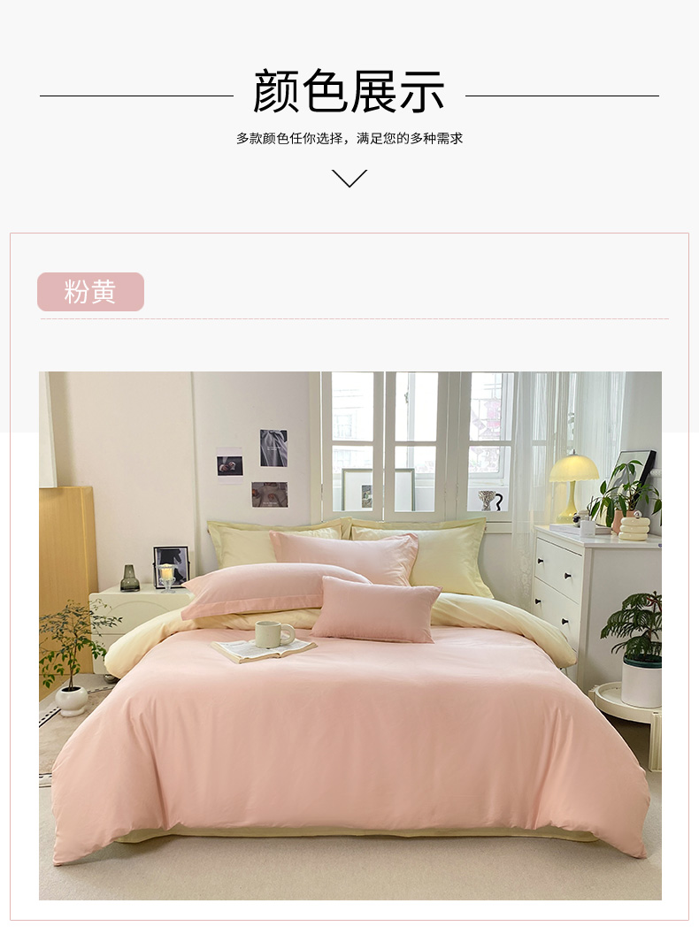 商品名称:VEKEN/维科家纺全棉A类素色撞色款床品四件套-粉黄200*230cm