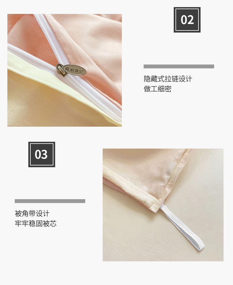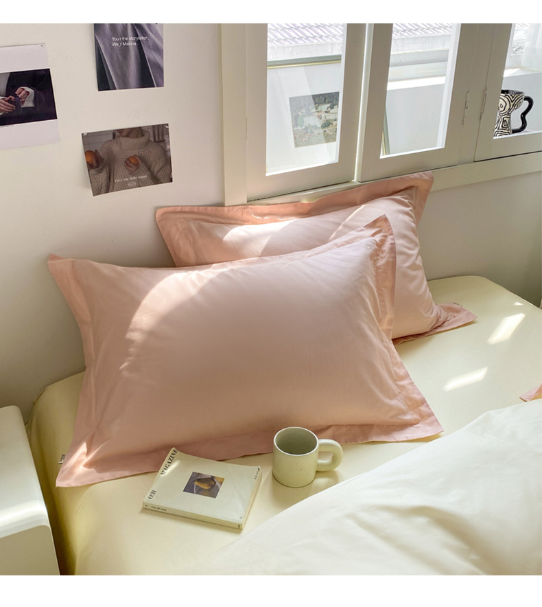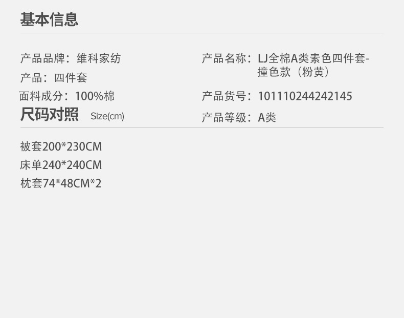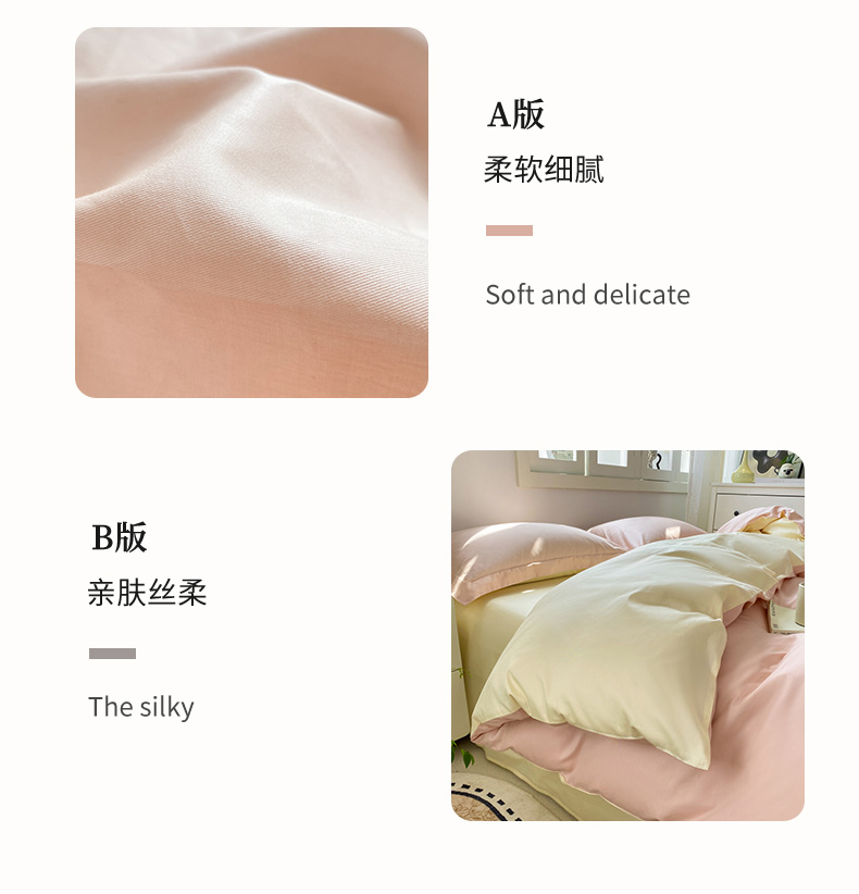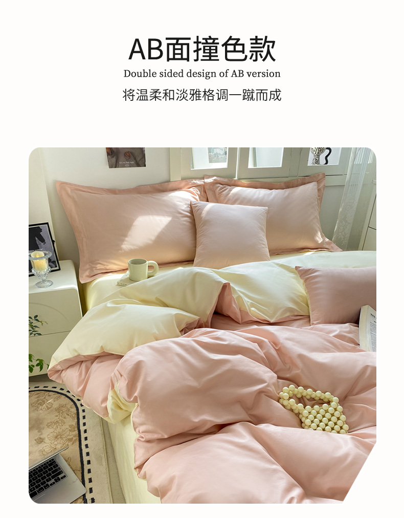 商品名称:VEKEN/维科家纺全棉A类素色撞色款床品四件套-粉黄200*230cm