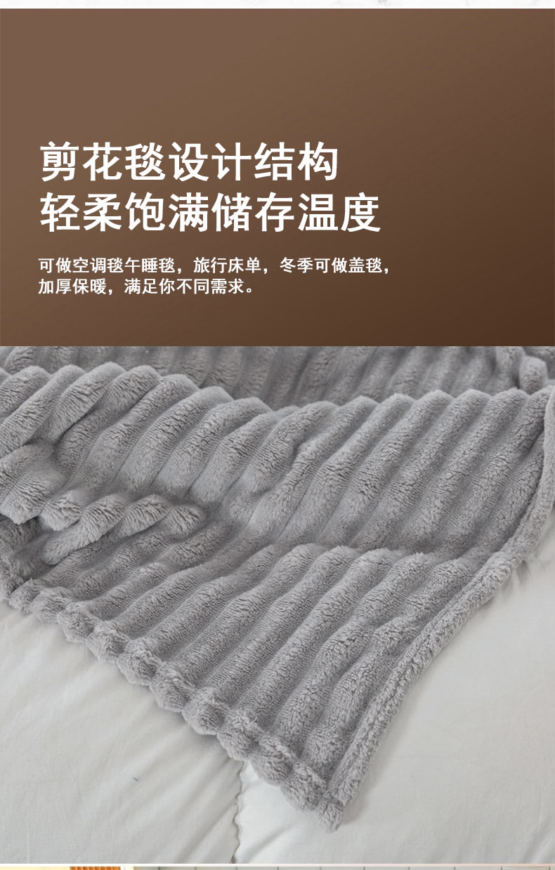 VEKEN/维科家纺加厚剪花绒法兰绒毯-灰色