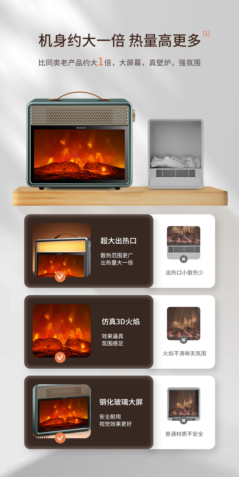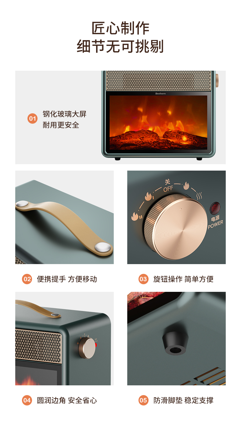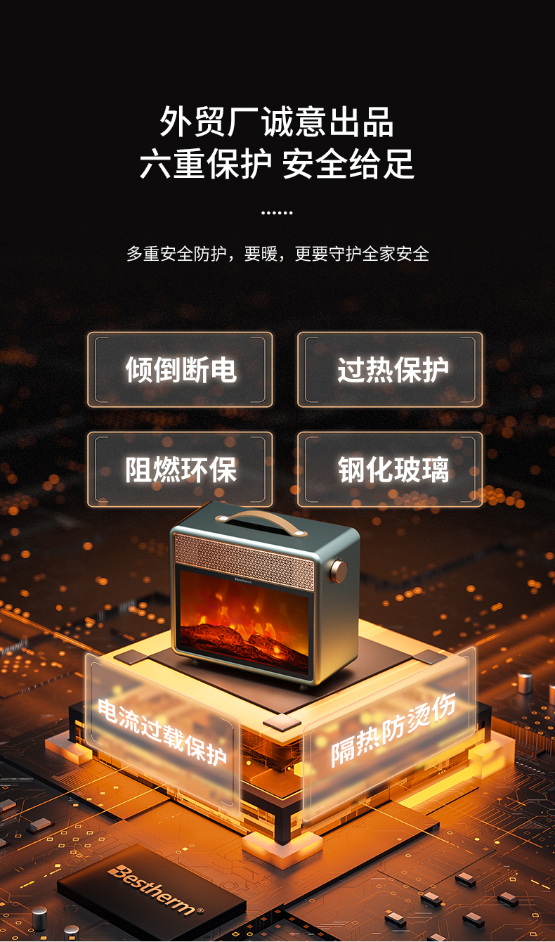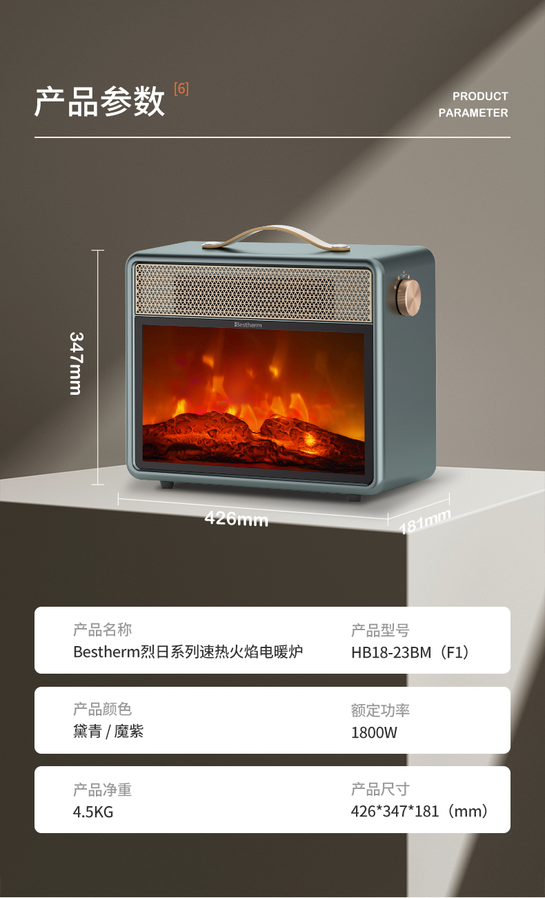 商品名称:Bestherm/百斯腾烈日系列速热火焰电暖炉HB18-23BM(F1)