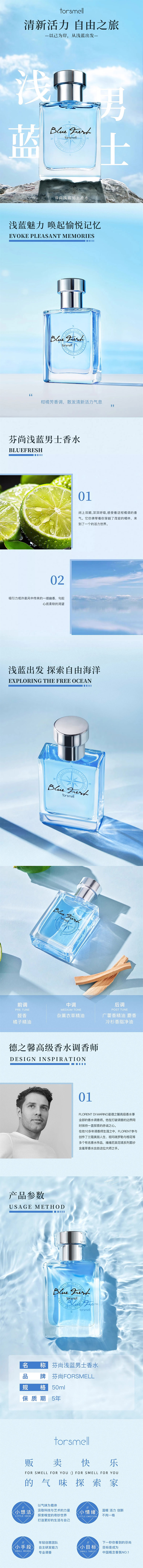 商品名称:FORSHINE/芬尚浅蓝男士香水50ml(专柜版)