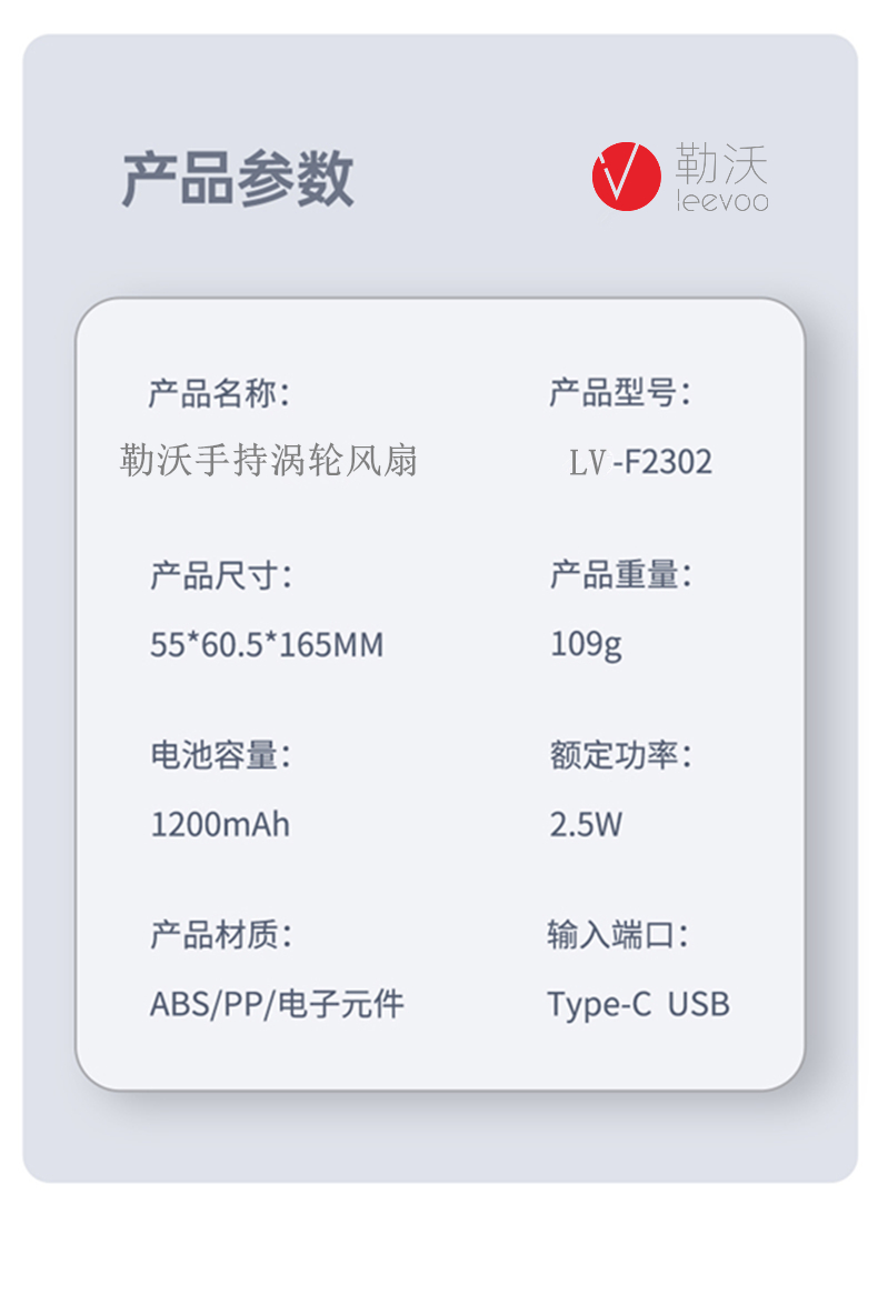 商品名称:勒沃手持涡轮风扇LV-F2302