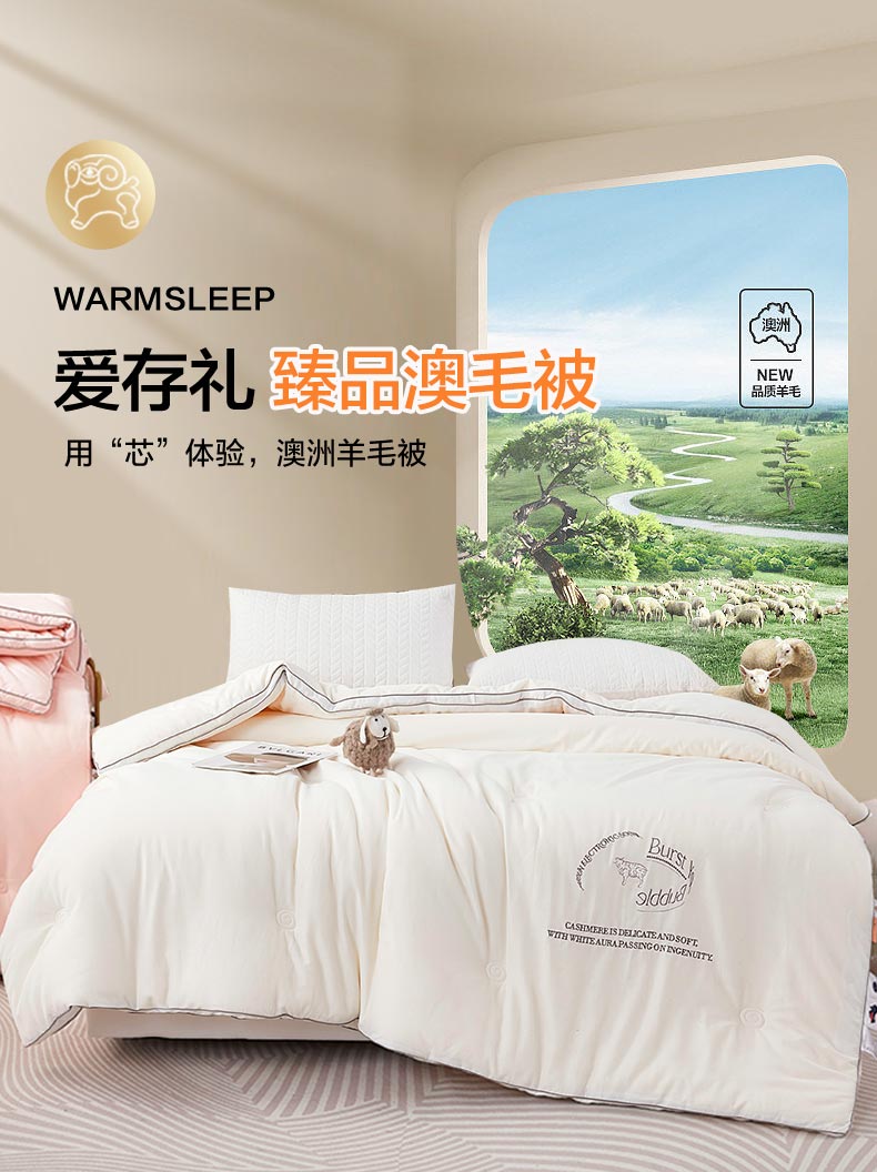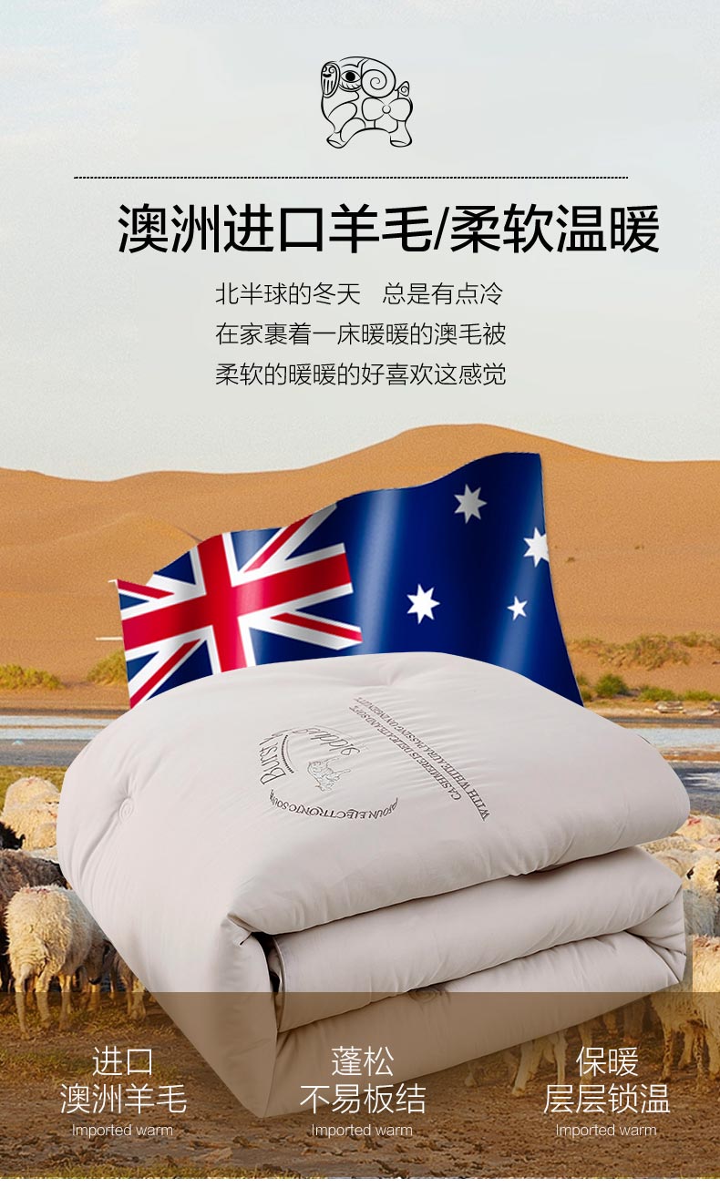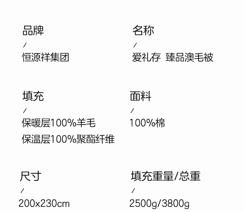 商品名称:恒源祥彩羊爱礼存臻品澳毛被200*230cm 3800g
