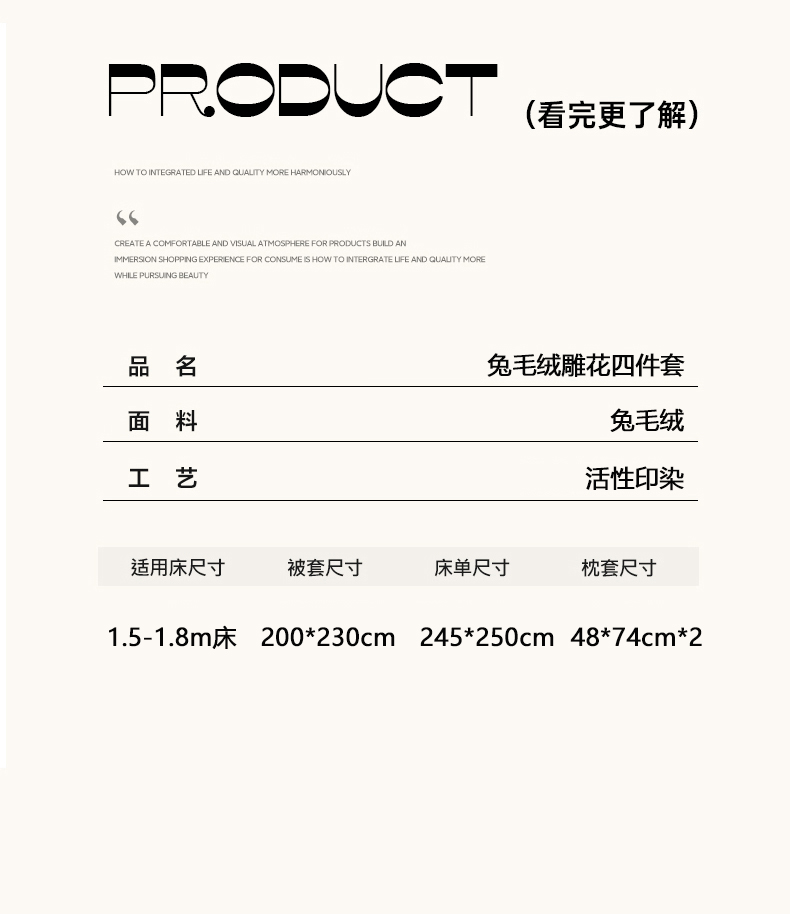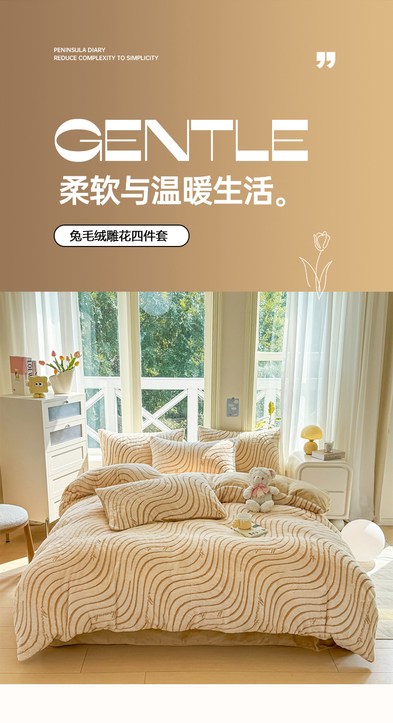 商品名称:PAULO PEDRO/保罗彼得兔毛绒雕花床品四件套200*230cm