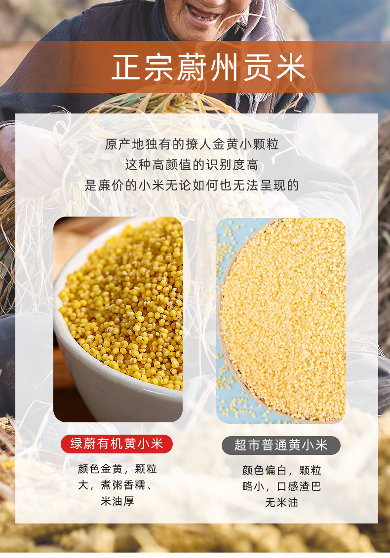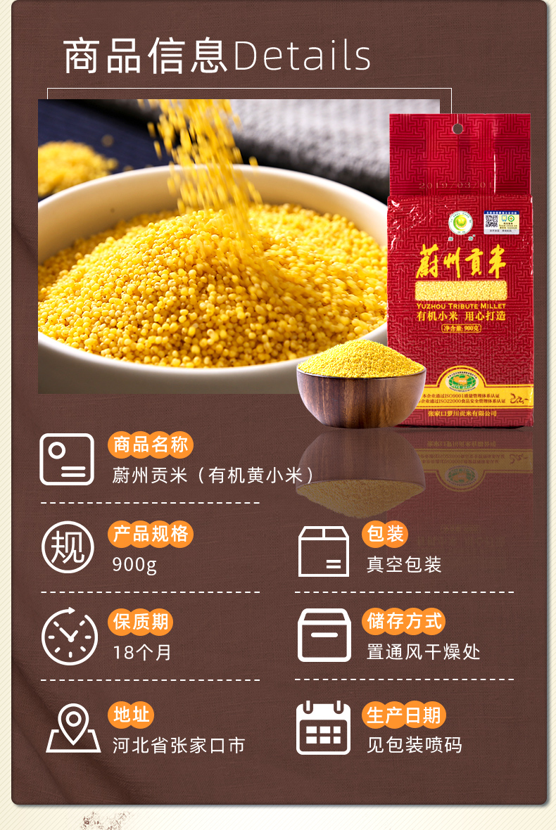 商品名称:【京东/德邦配送】绿蔚蔚州贡米有机黄小米900g