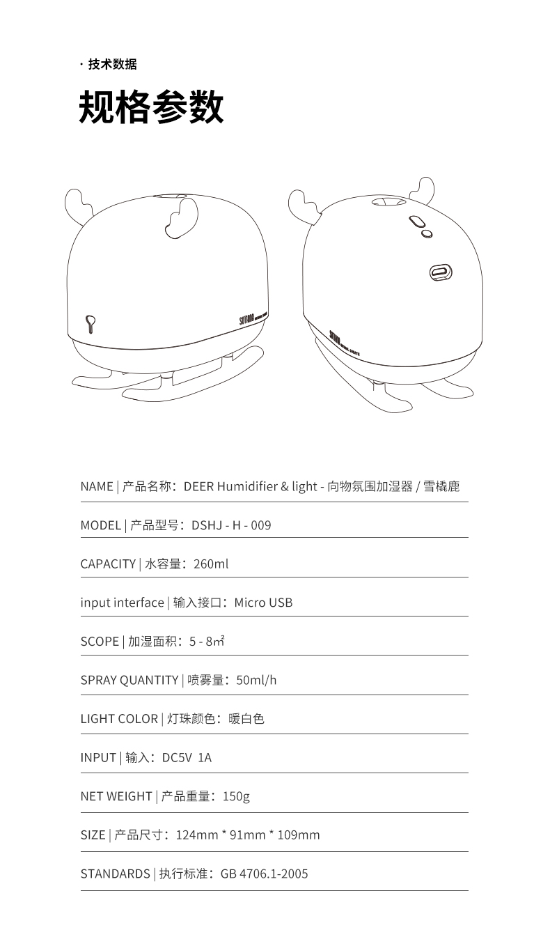 商品名称:SOTHING/向物260毫升氛围加湿器-雪橇鹿