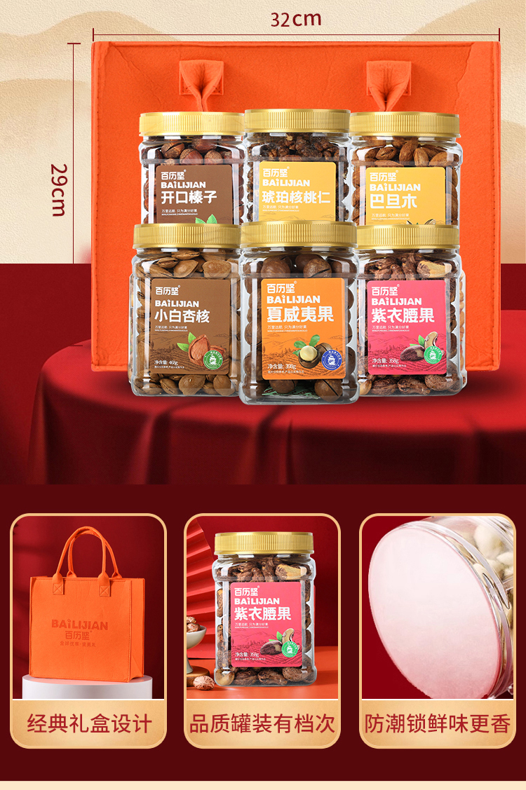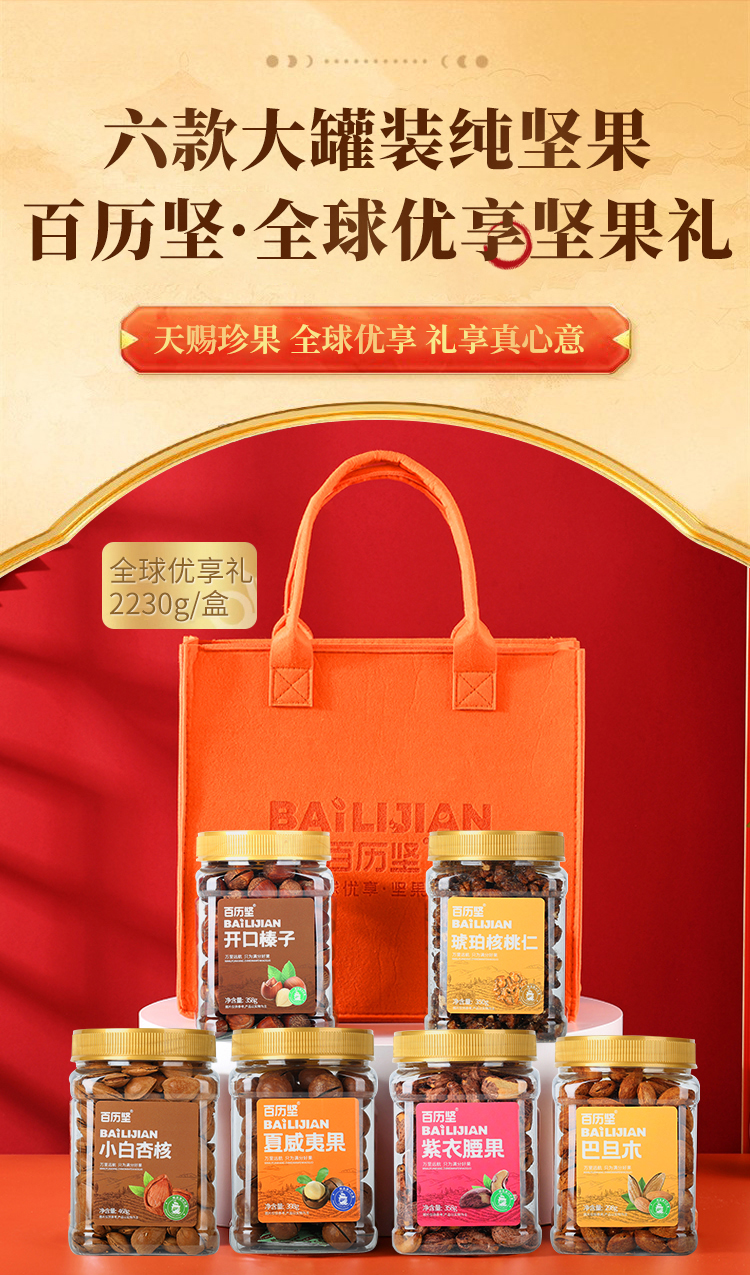 商品名称:【京东配送】百历坚全球优享坚果礼盒2230g