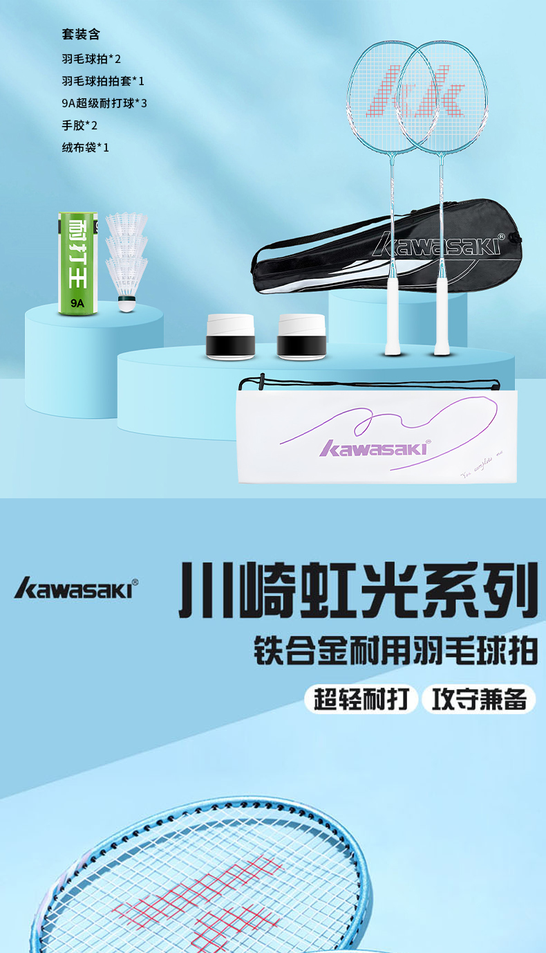 商品名称:KAWASAKI/川崎羽毛球拍运动套装IRON-007(套装C04)