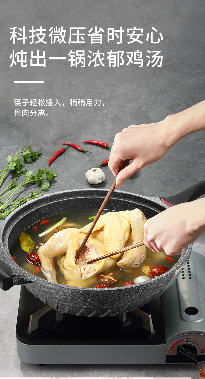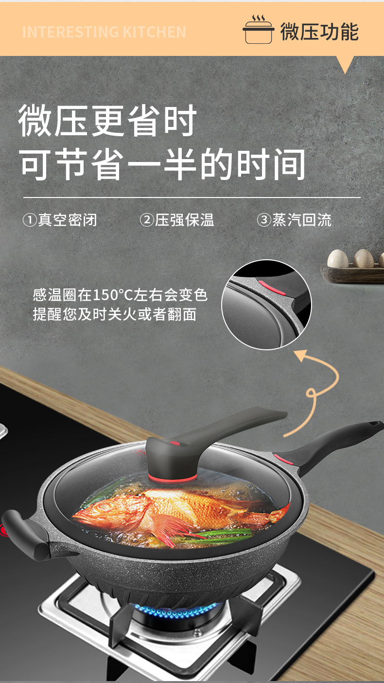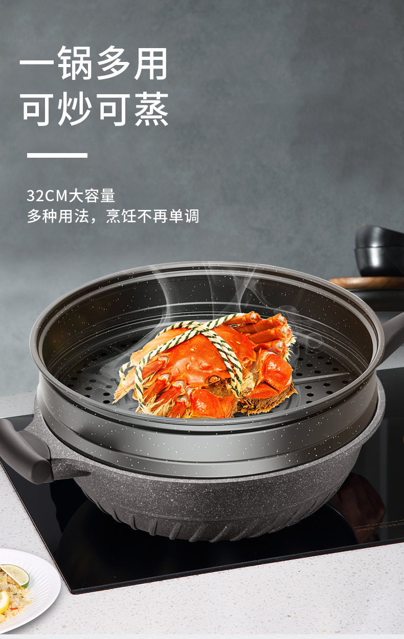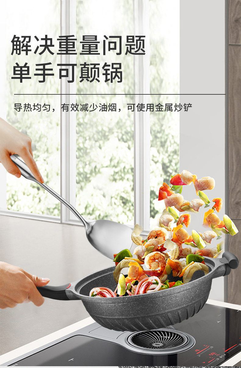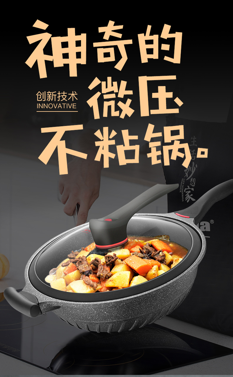 omuda/欧美达32cm黑钻系列微压炒锅A款HZC32-B