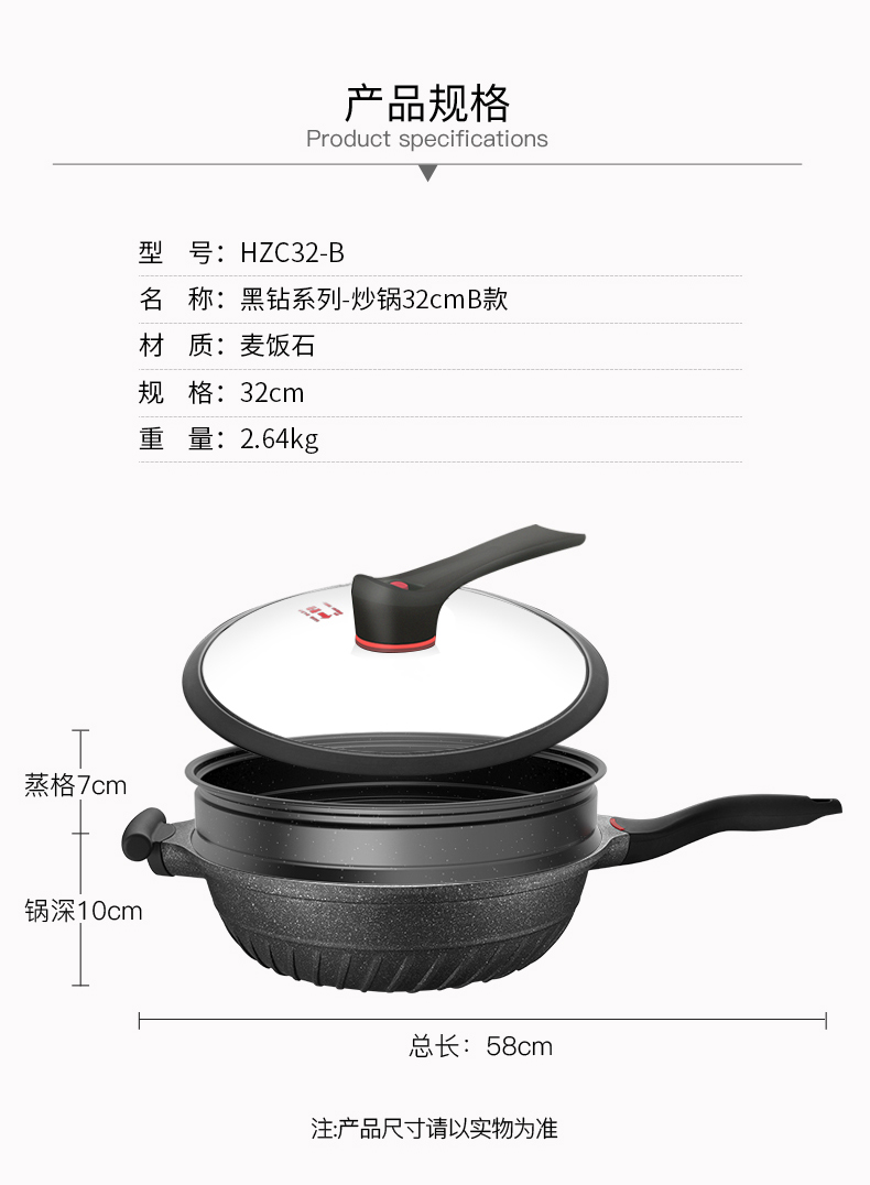 商品名称:omuda/欧美达32cm黑钻系列微压炒锅A款HZC32-B