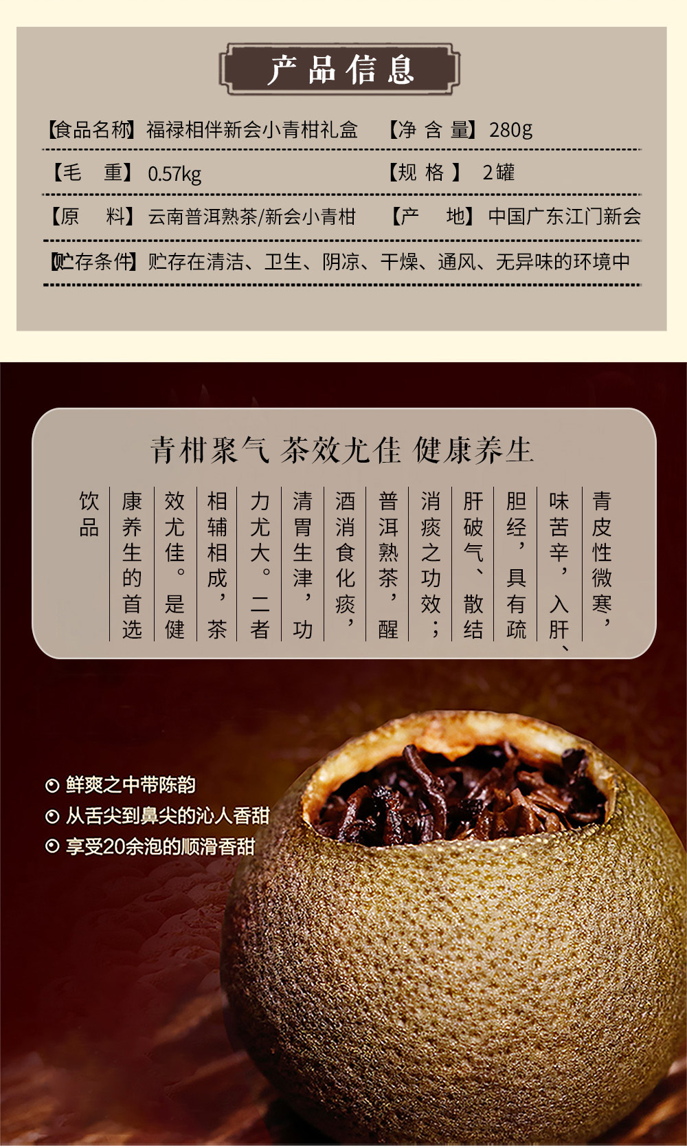 商品名称:昀品堂乾陳益品福禄相伴新会小青柑礼盒280g
