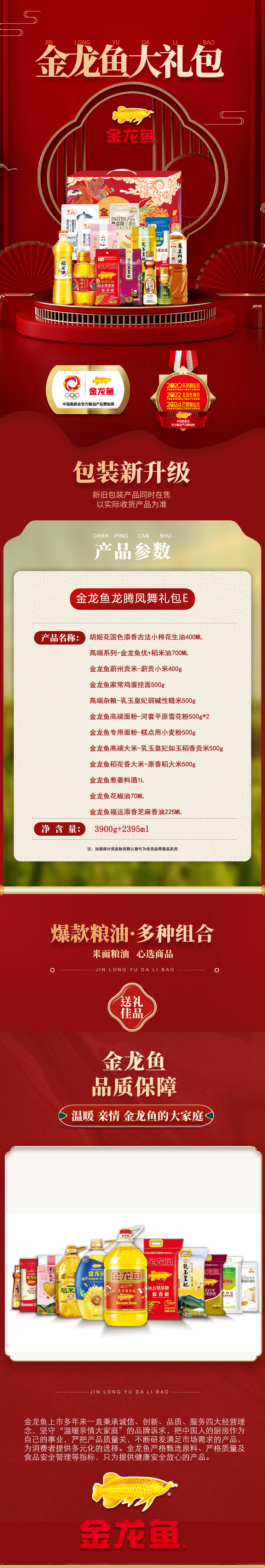 商品名称:金龙鱼龙腾凤舞食品礼包E款3900g+2395ml