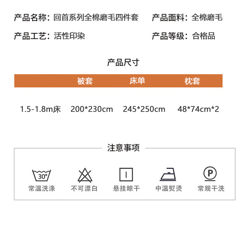 商品名称:PAULO PEDRO/保罗彼得回首系列全棉磨毛床品四件套200*230cm