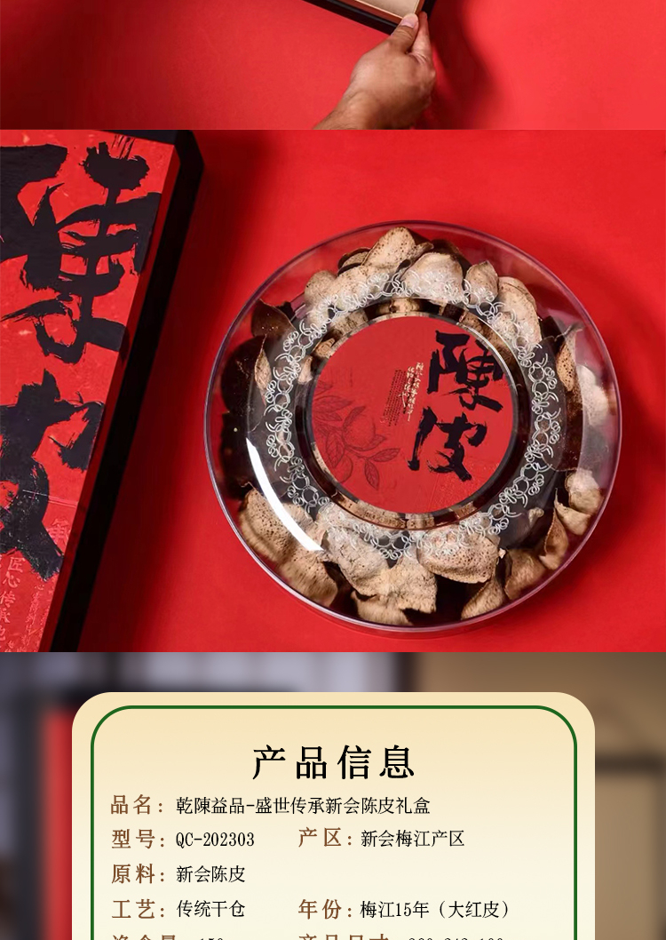 商品名称:昀品堂乾陳益品盛世传承新会陈皮礼盒150g