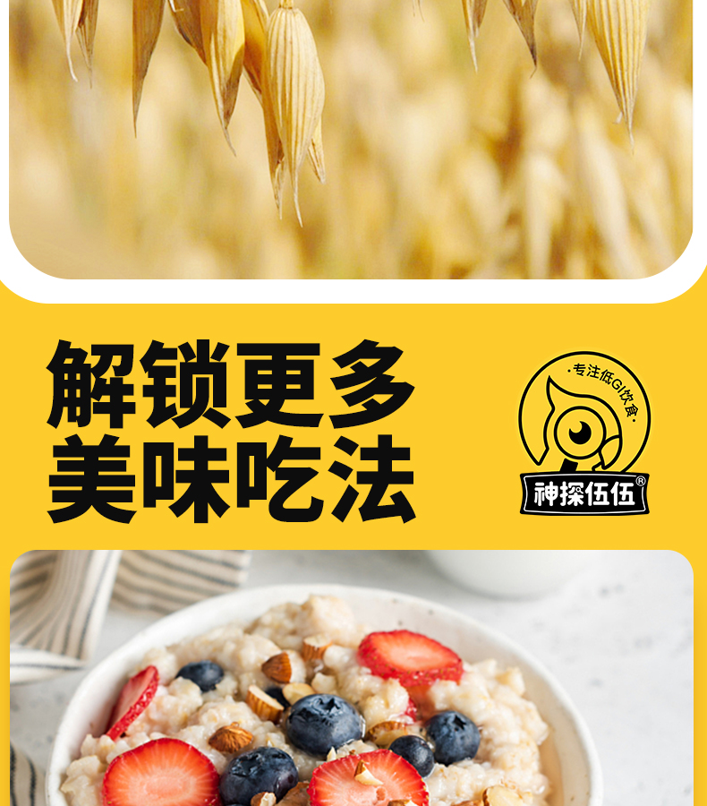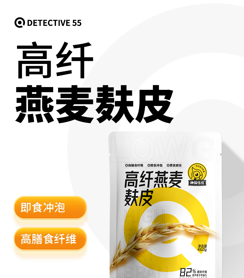 商品名称:神探伍伍低升糖指数高纤燕麦麸皮460g
