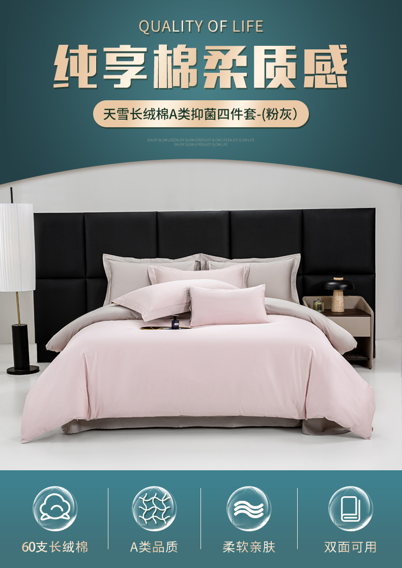 商品名称:VEKEN/维科家纺天雪长绒棉A类抑菌纯色款床品四件套-粉灰200*230cm
