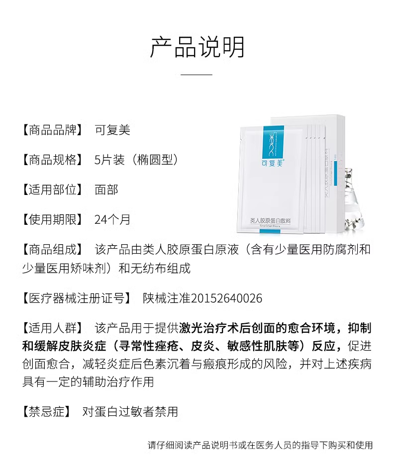 商品名称:可复美重组胶原蛋白敷料25g*5片