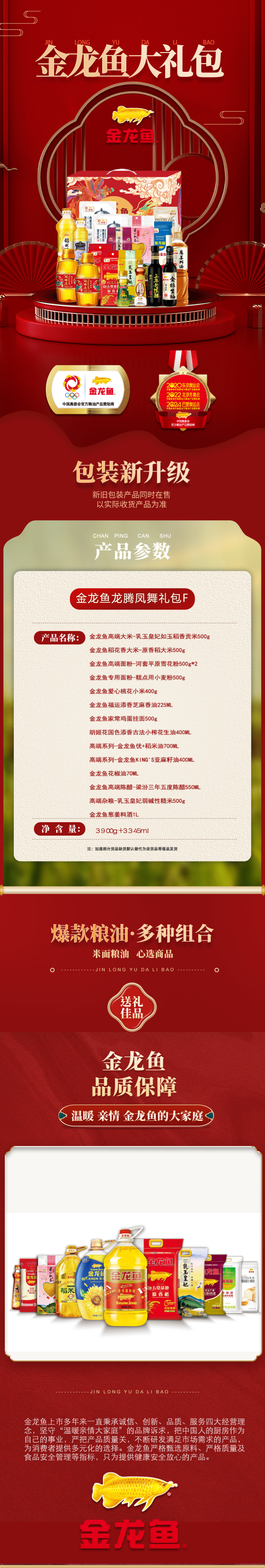 商品名称:金龙鱼龙腾凤舞食品礼包F款3900g+3375ml