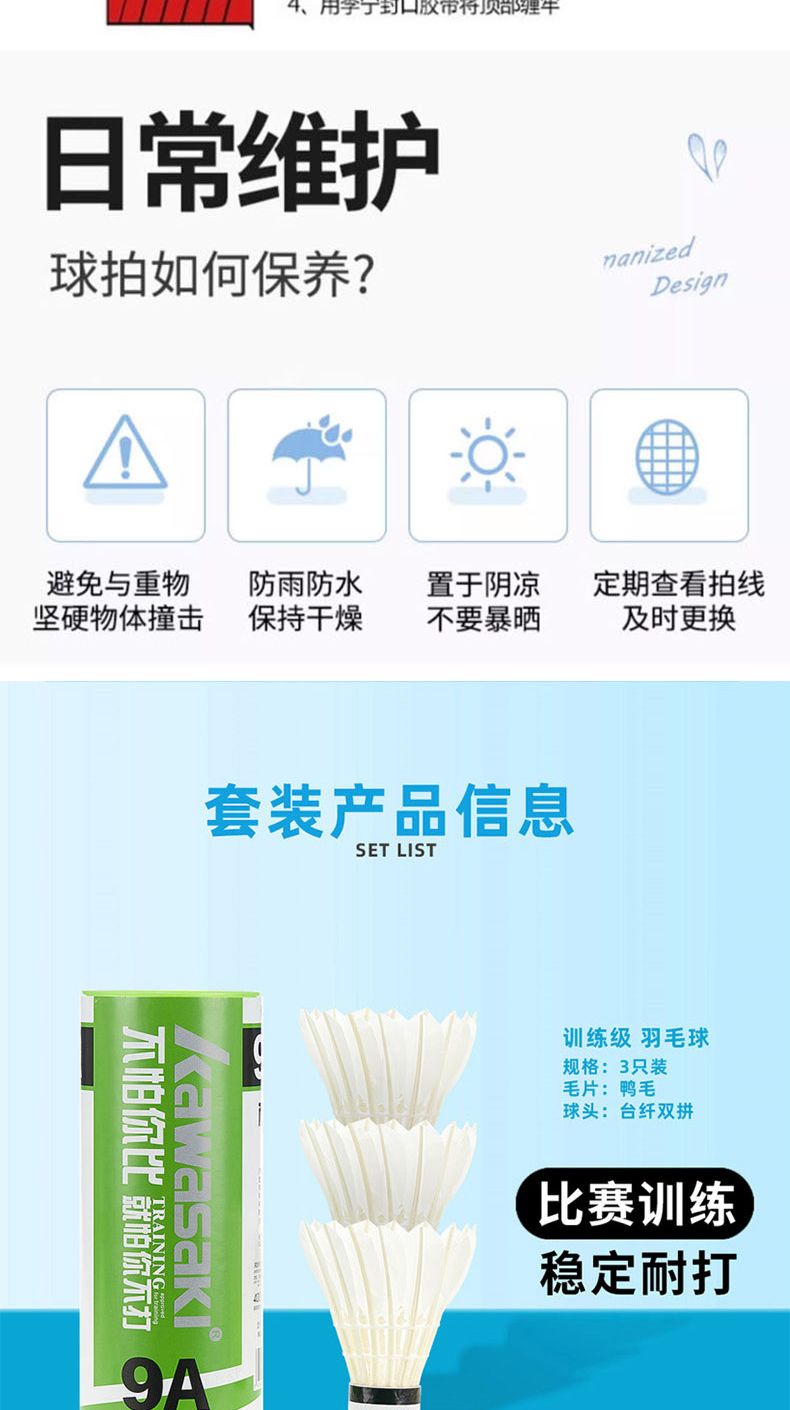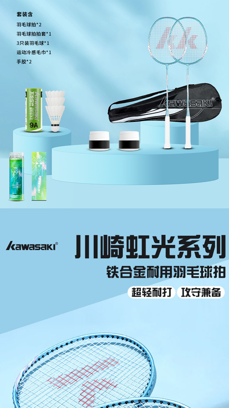 商品名称:KAWASAKI/川崎羽毛球拍运动套装IRON-007(套装C05)