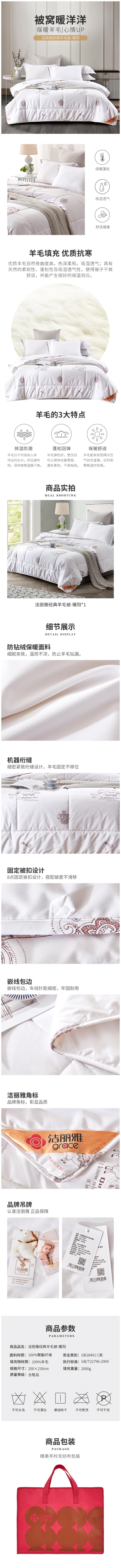 商品名称:GRACE/洁丽雅暖阳经典羊毛被200*230cm 2000g