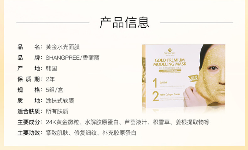 商品名称:SHANGPREE/香蒲丽 黄金水光面膜 5片