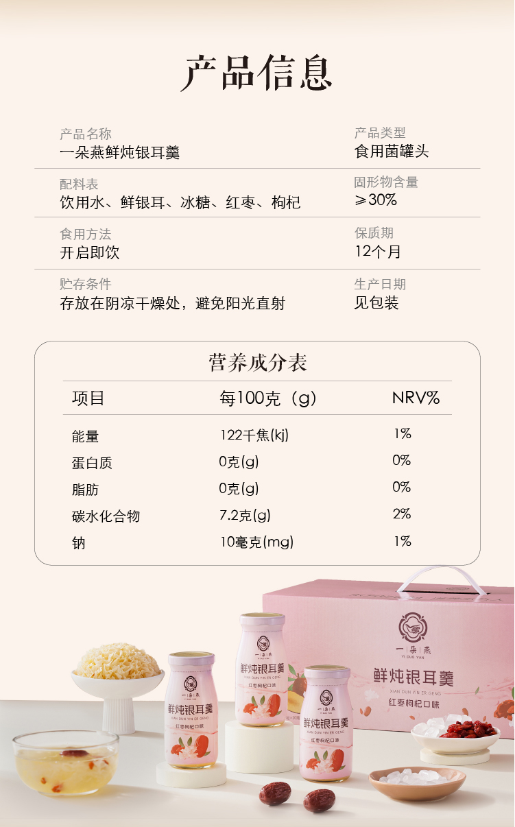 商品名称:【京东/顺丰/德邦配送】一朵燕鲜炖银耳羹1980g
