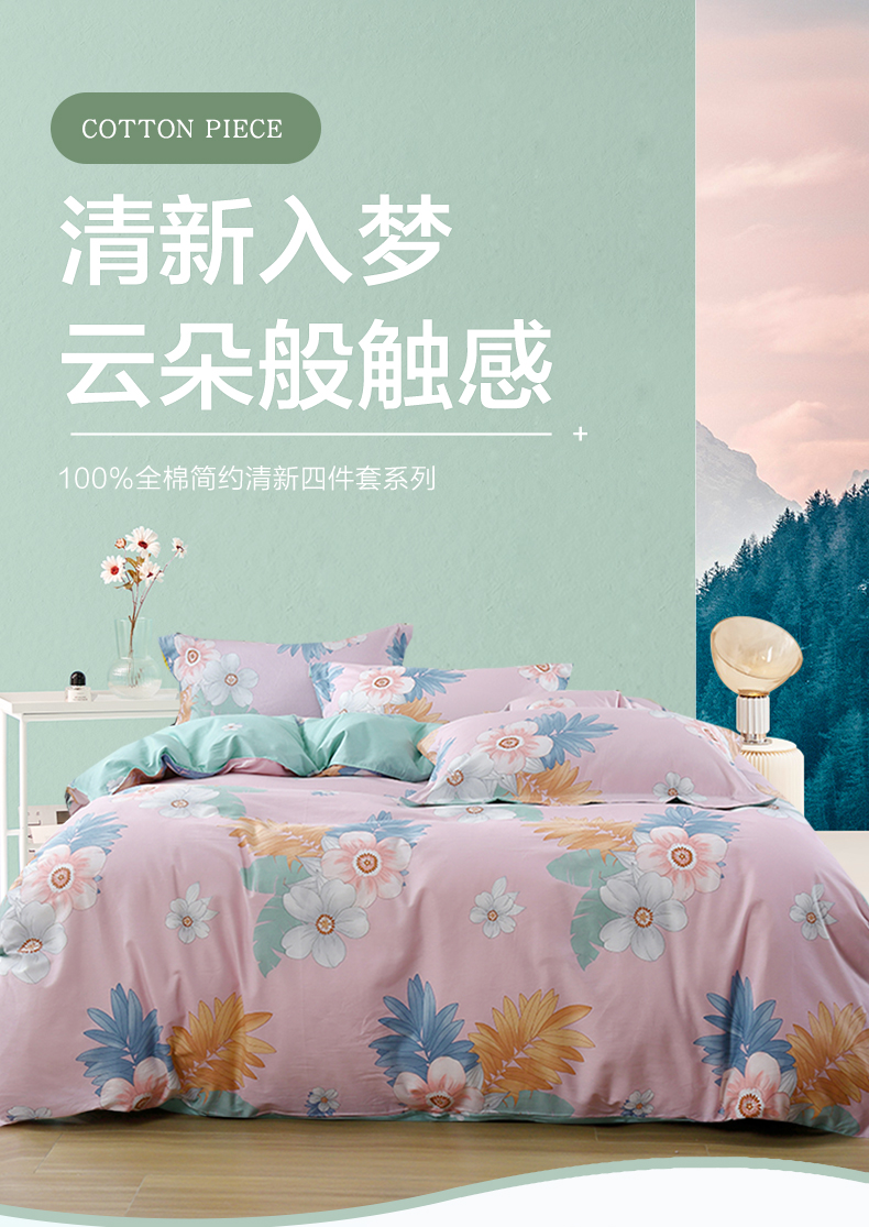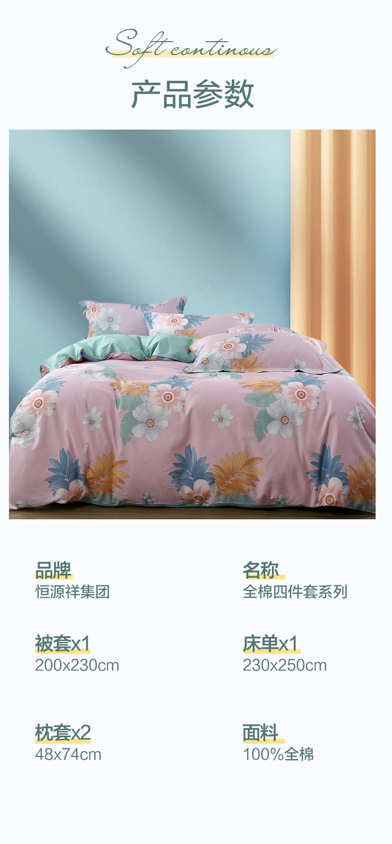 商品名称:恒源祥彩羊那年花开粉全棉床品四件套200*230cm