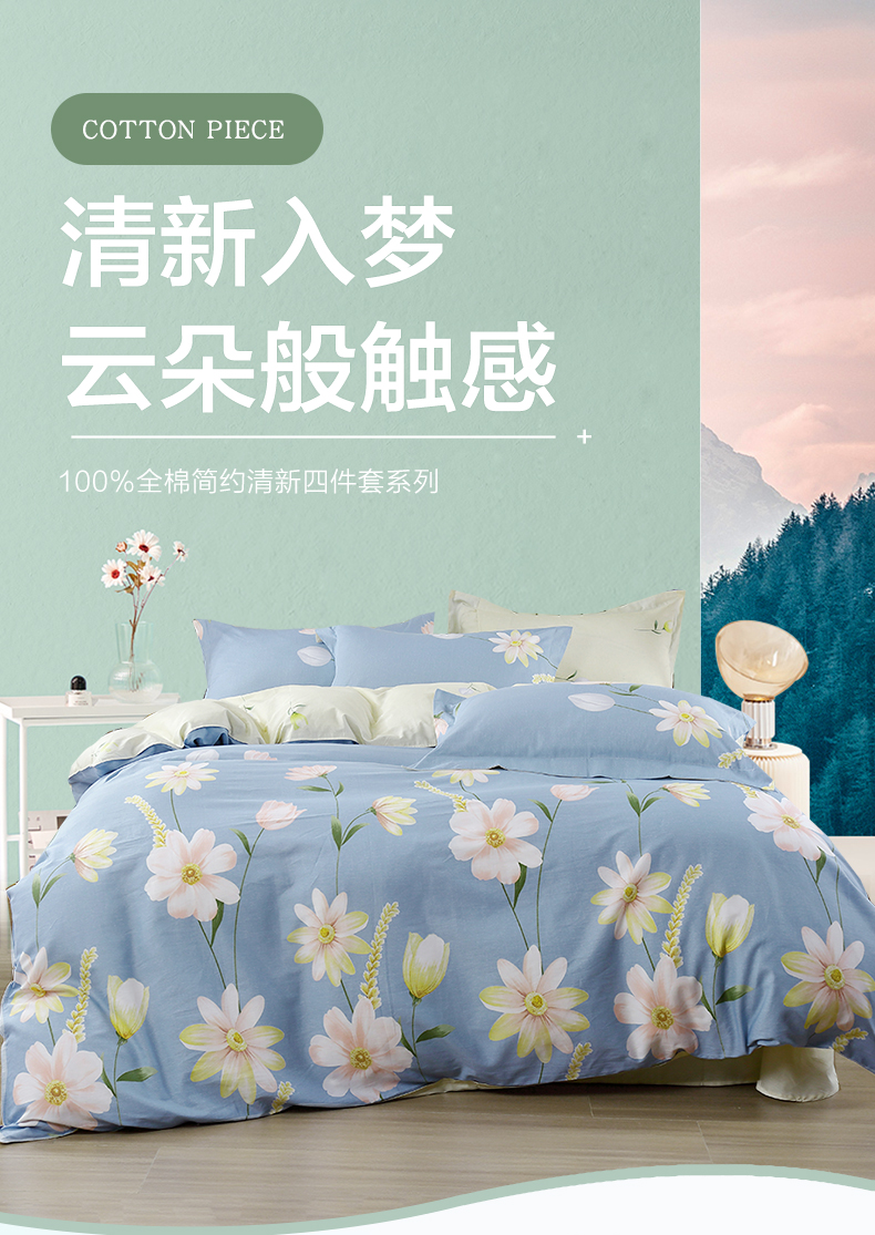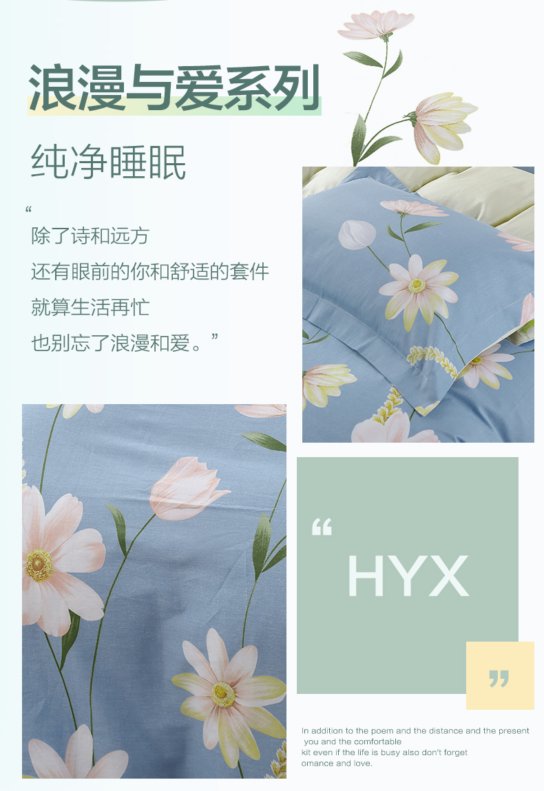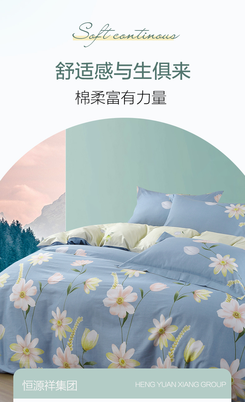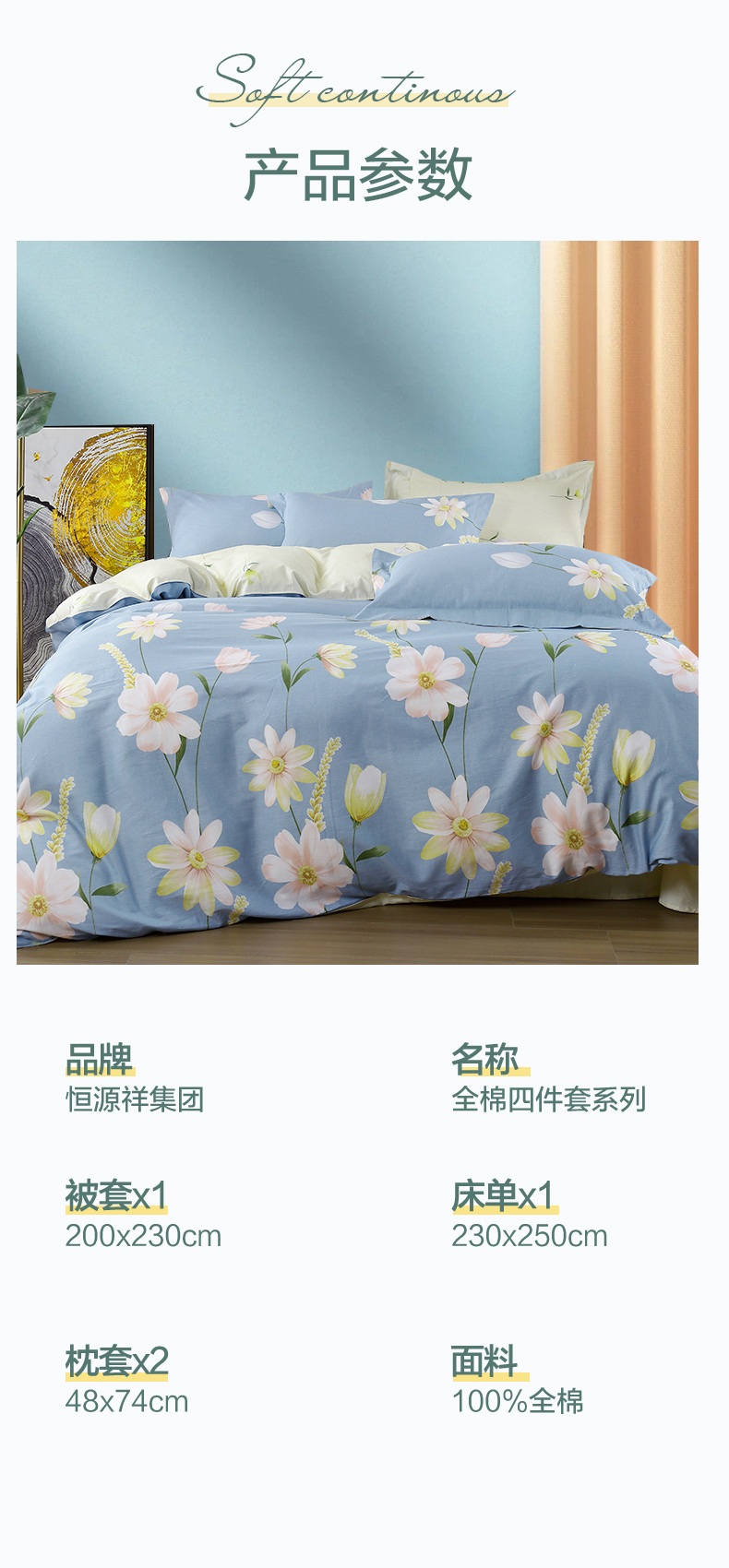 商品名称:恒源祥彩羊雨露花香蓝全棉床品四件套200*230cm