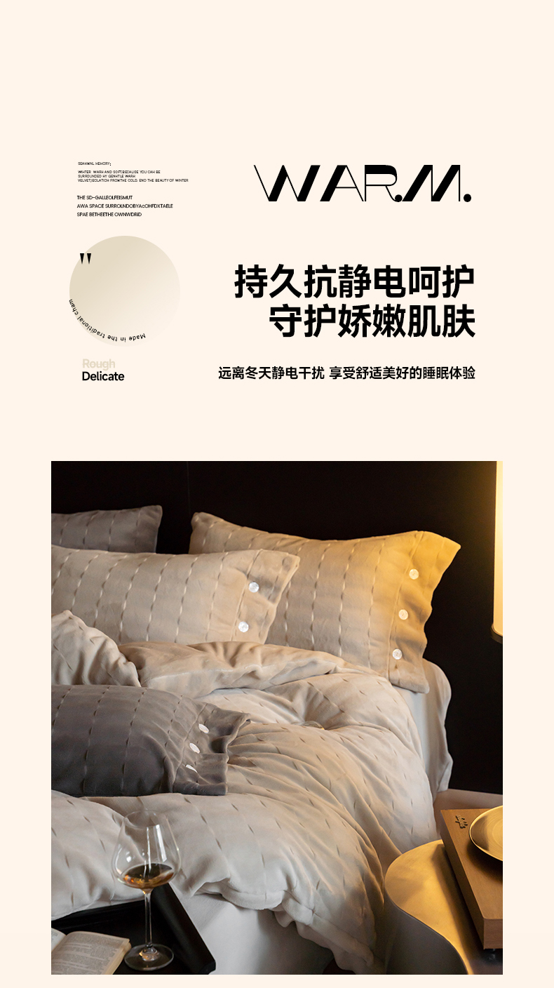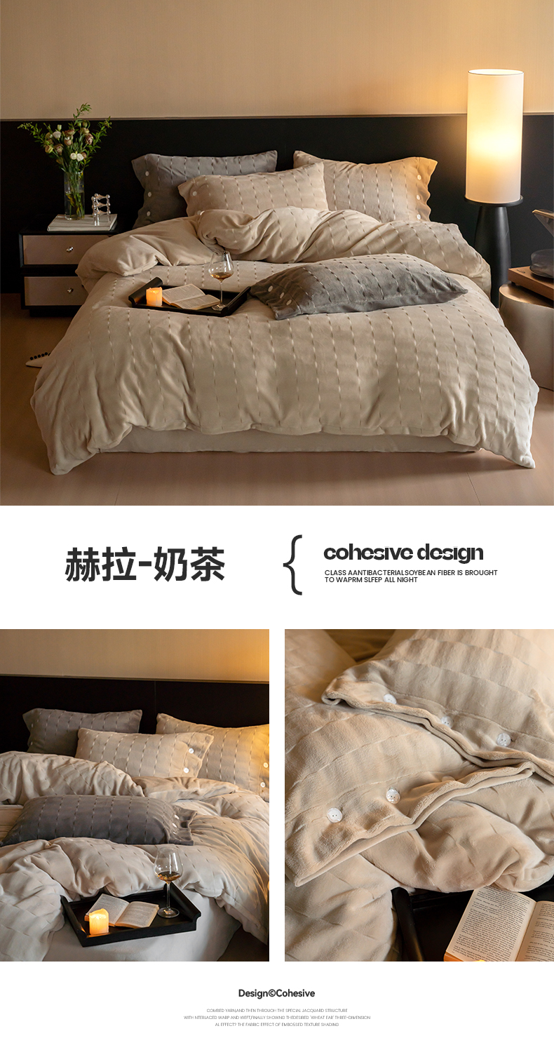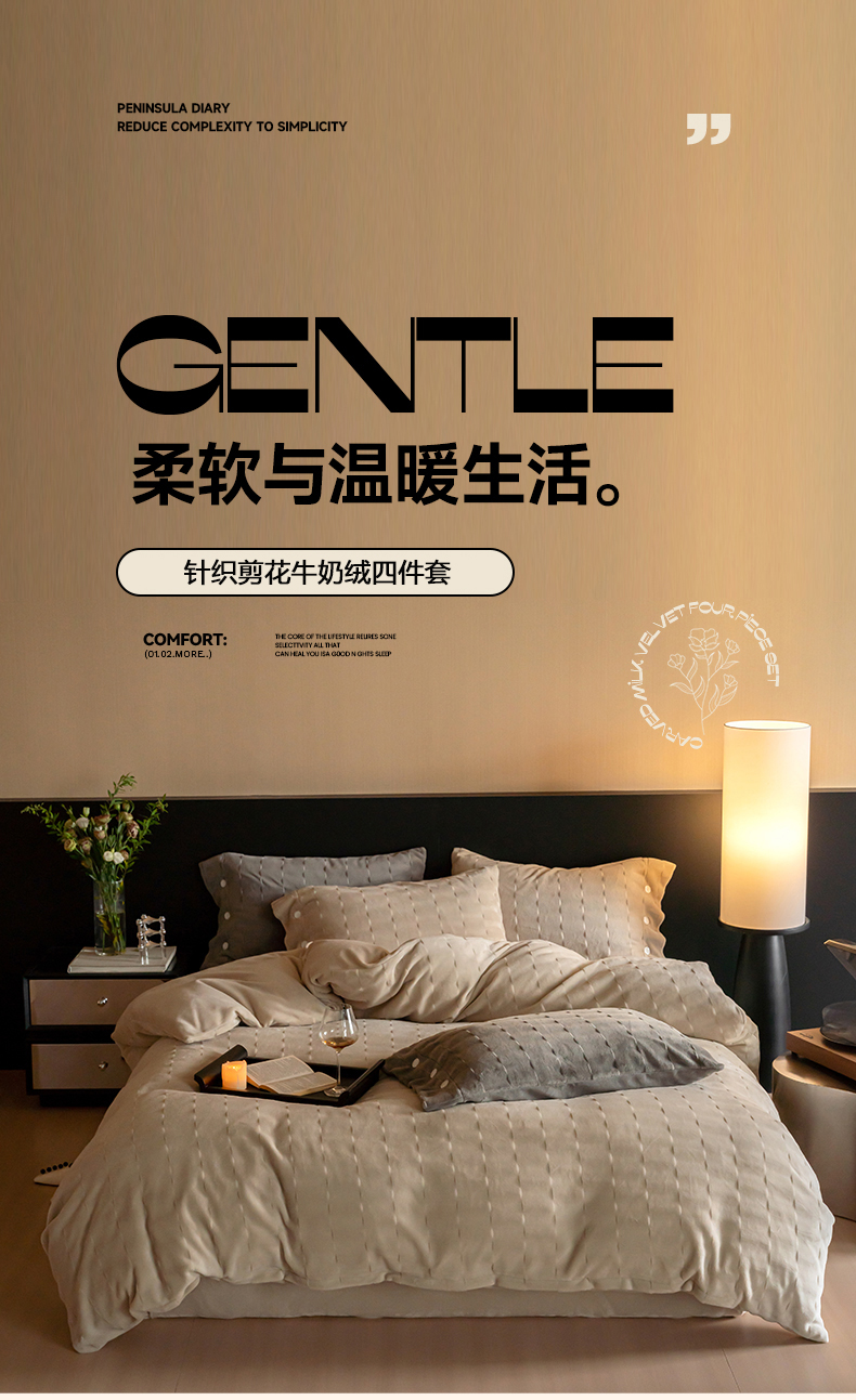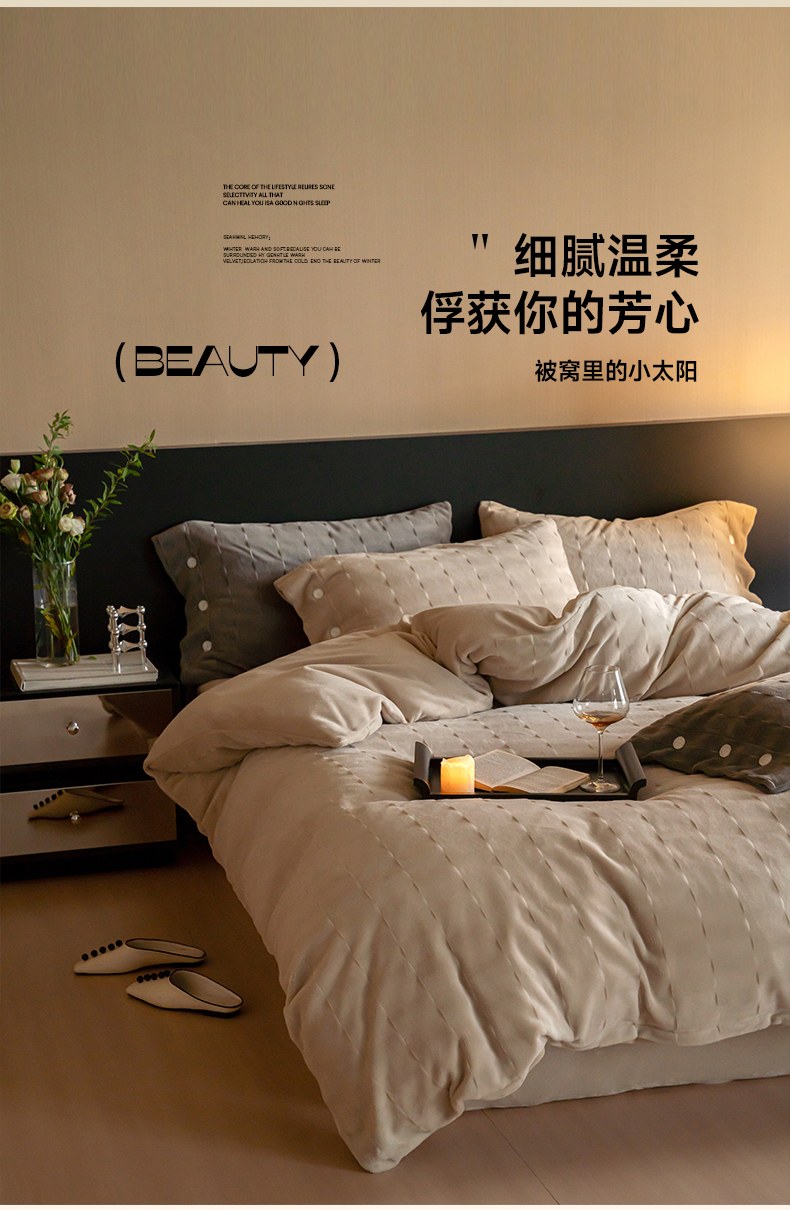 PAULO PEDRO/保罗彼得针织剪花牛奶绒床品四件套200*230cm