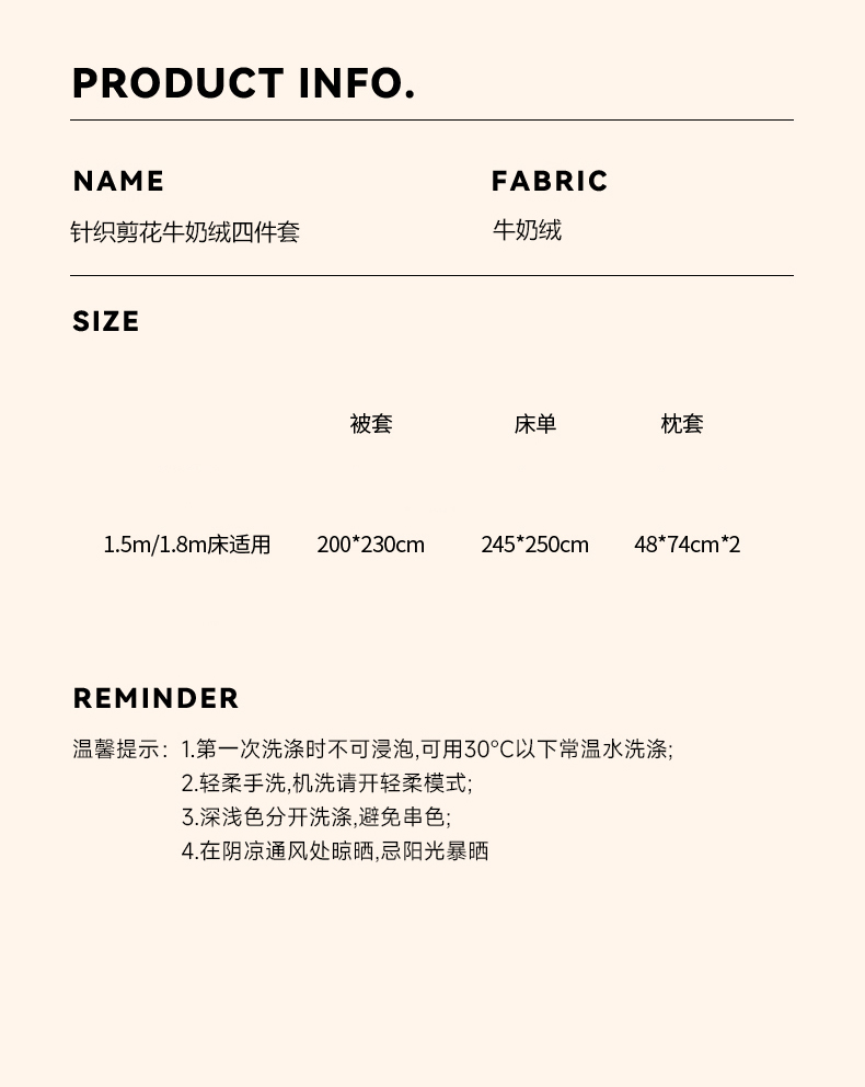 商品名称:PAULO PEDRO/保罗彼得针织剪花牛奶绒床品四件套200*230cm