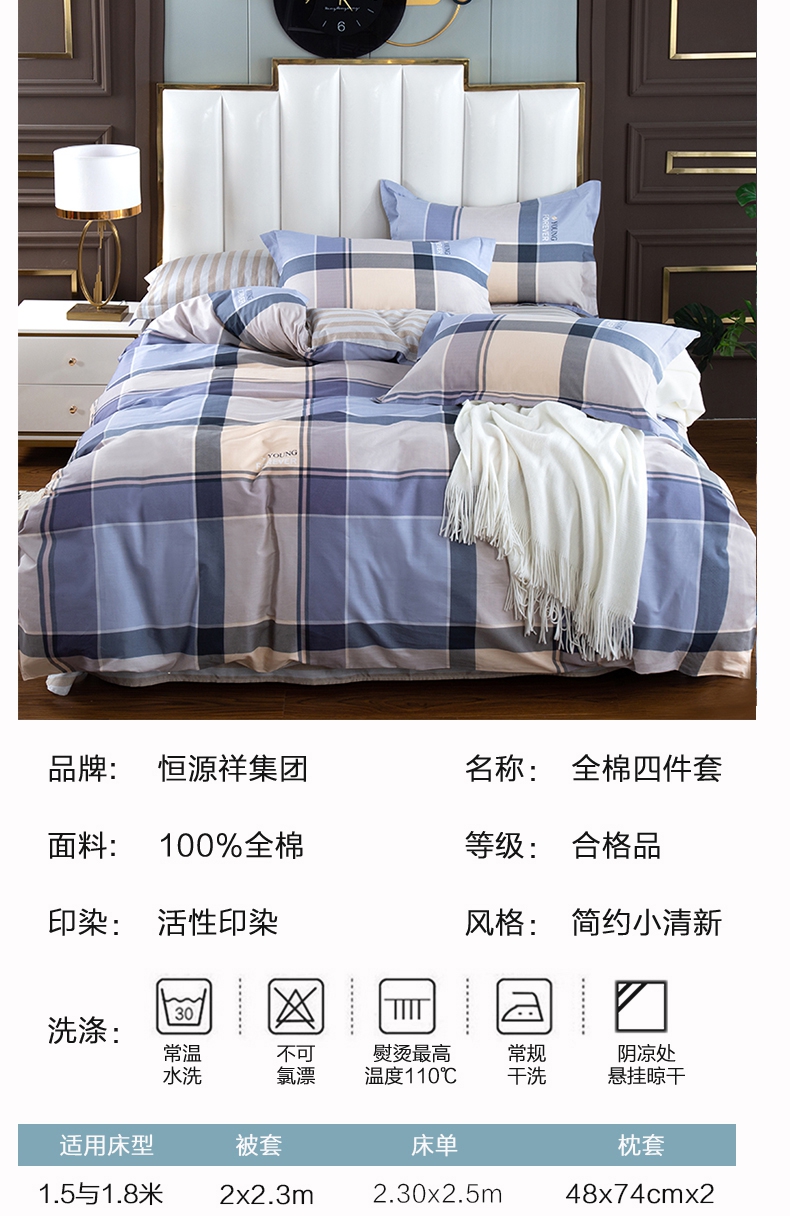 商品名称:恒源祥彩羊云中忆紫全棉床品四件套200*230cm
