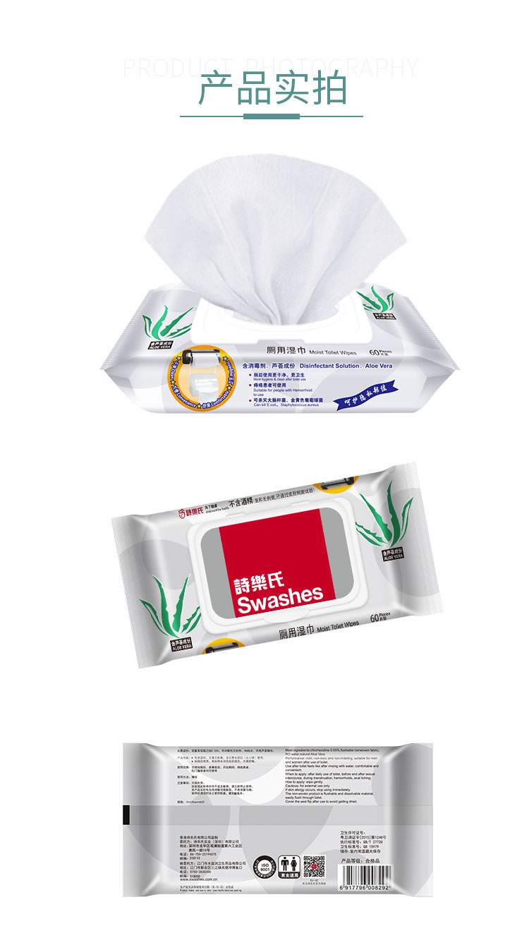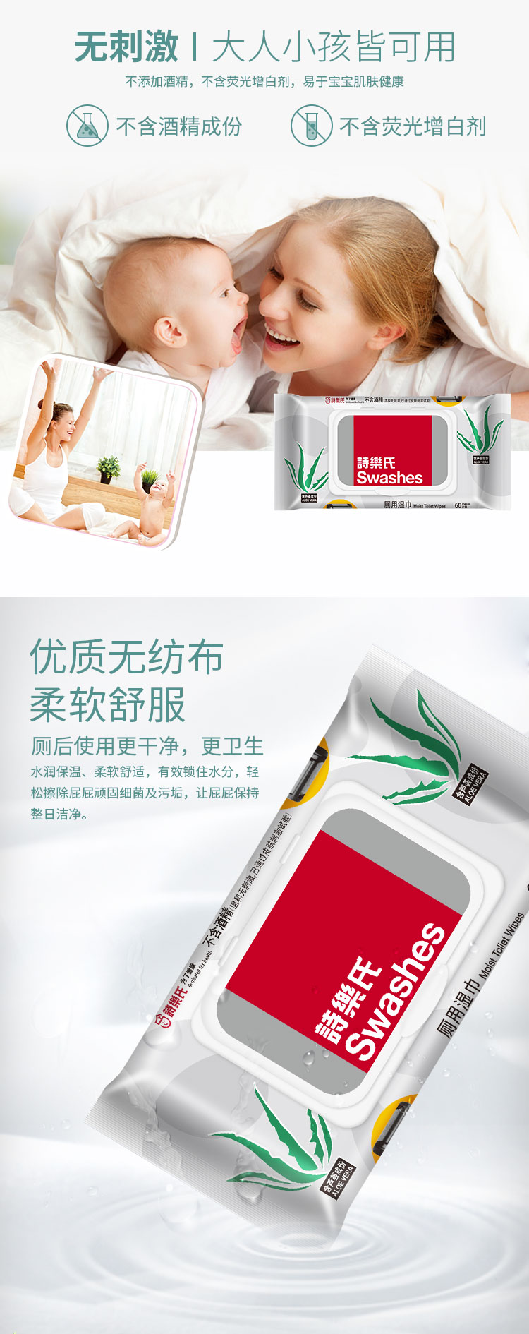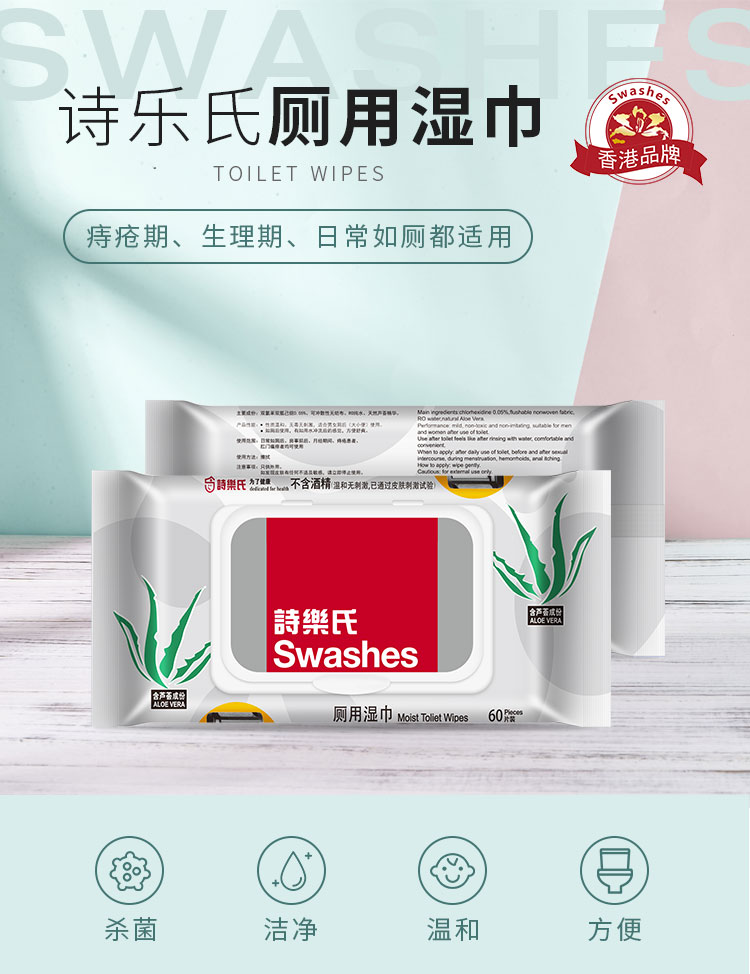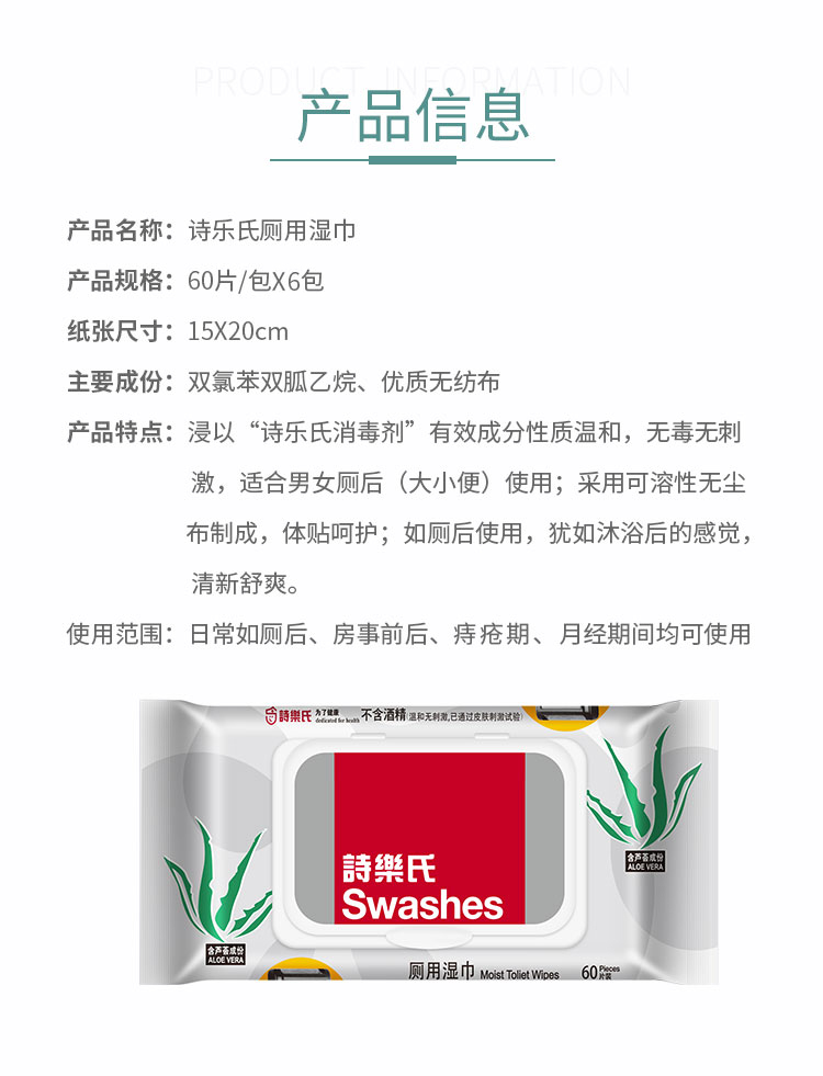 商品名称:Swashes/诗乐氏带盖装厕用湿巾60片*6包A09
