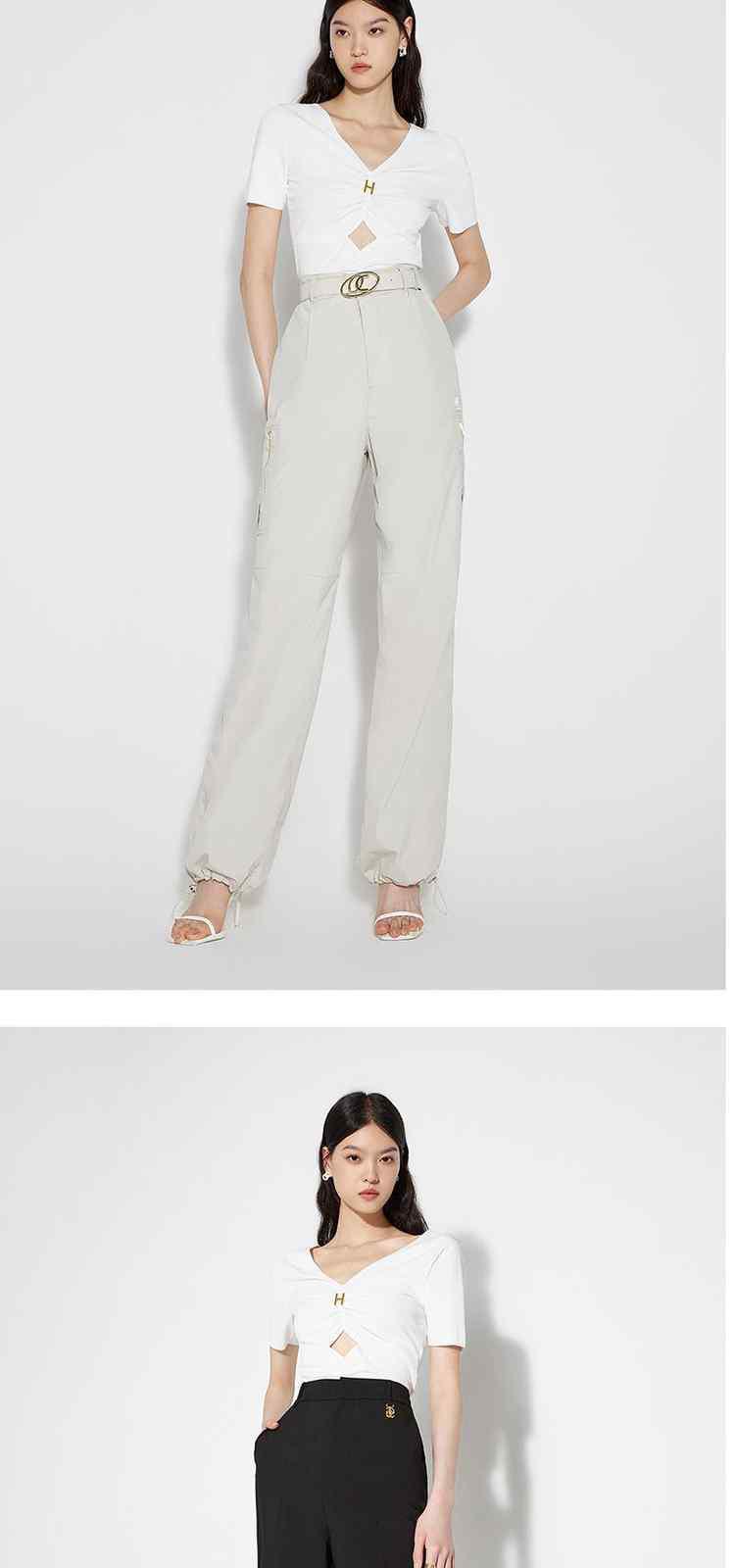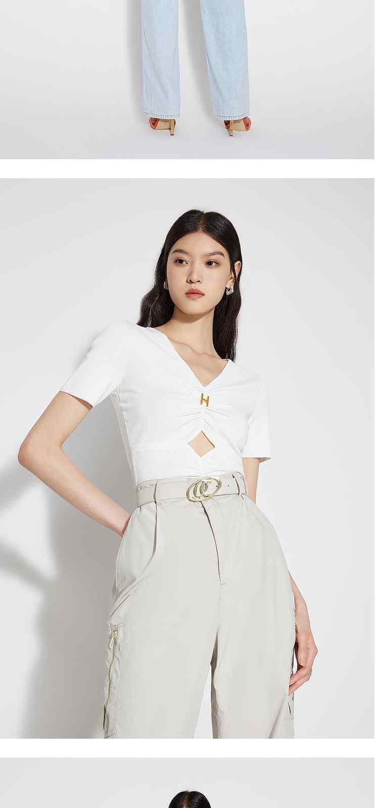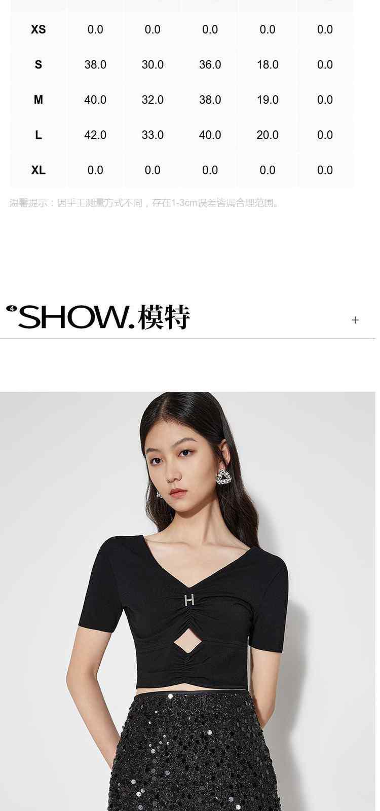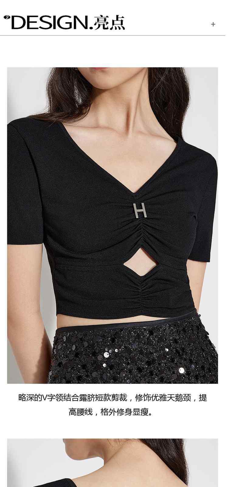 夏装 镂空短款V领法式短袖针织衫女 698063