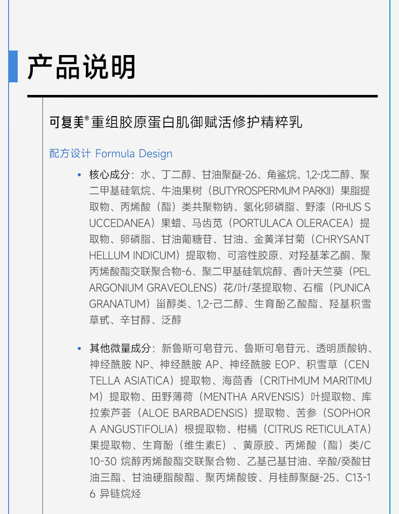 商品名称:可复美重组胶原蛋白肌御赋活修护精粹乳80ml